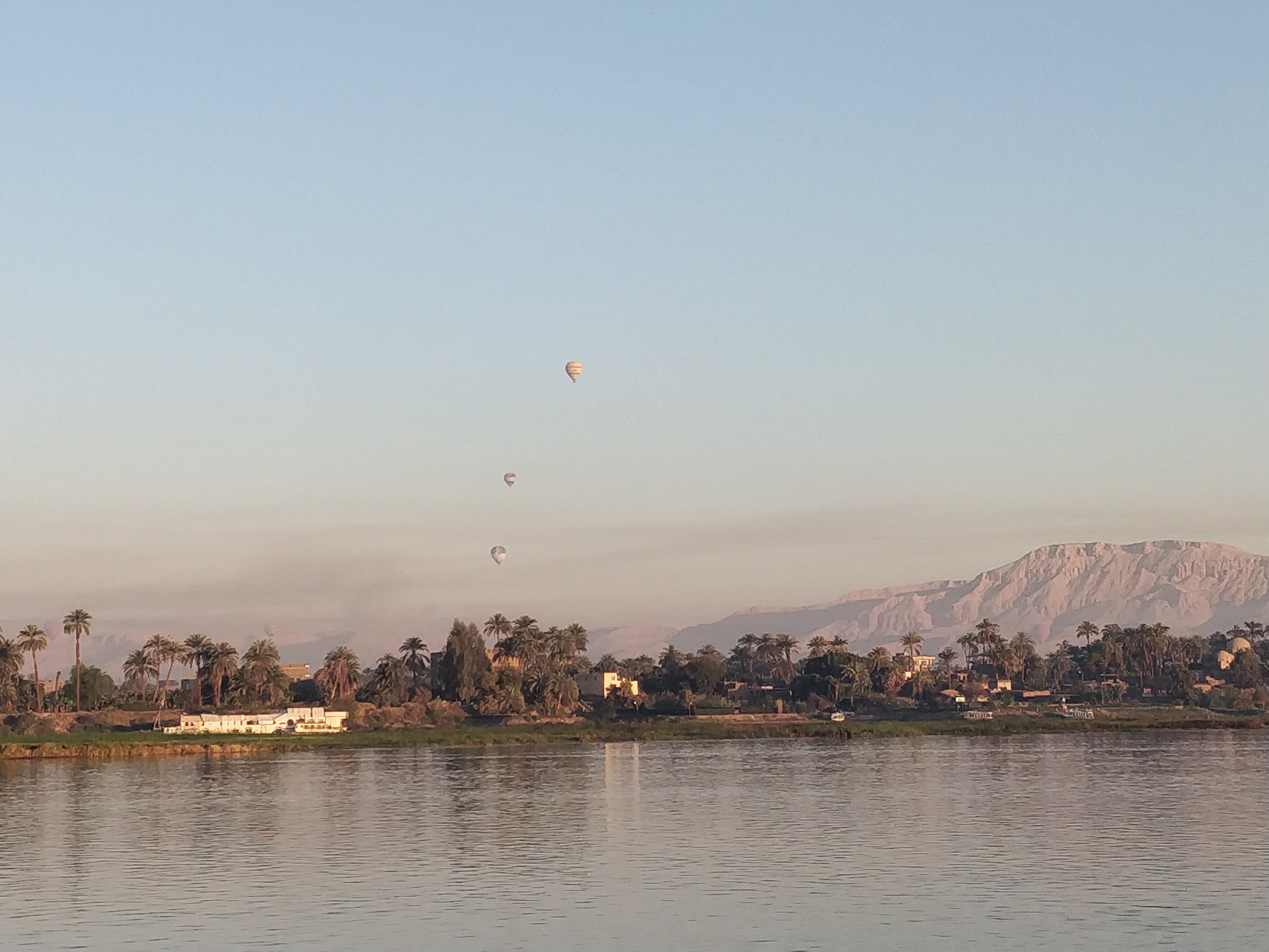 We pulled back the curtains in our room to reveal the mountains on the West Bank of Luxor. There was something floating in the air – hot air balloons! It looked dream-like and amazing. Sadly, it was a hazy morning and the view would not have been great from up there – we were glad we didn’t wake up at 3am and go for it.