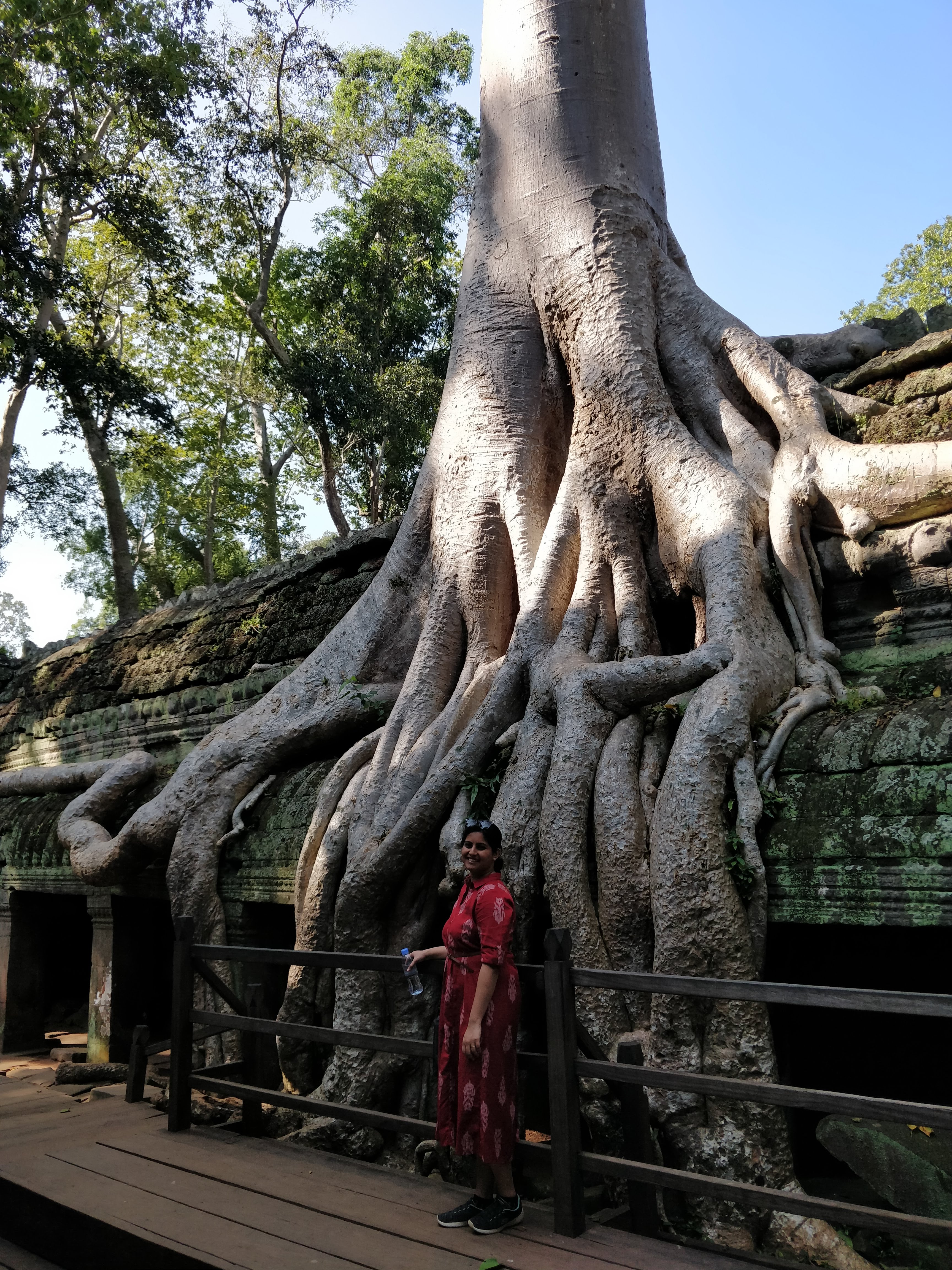 The Angkor Wat temple is synonymous with the country of Cambodia itself. The largest religious monument in the world, Angkor Wat was constructed in the 12th century by Khmer King Suryavarman II. It is so iconic that the national flag of Cambodia has the temple depicted in its centre! Our primary objective of this trip to Cambodia was this.