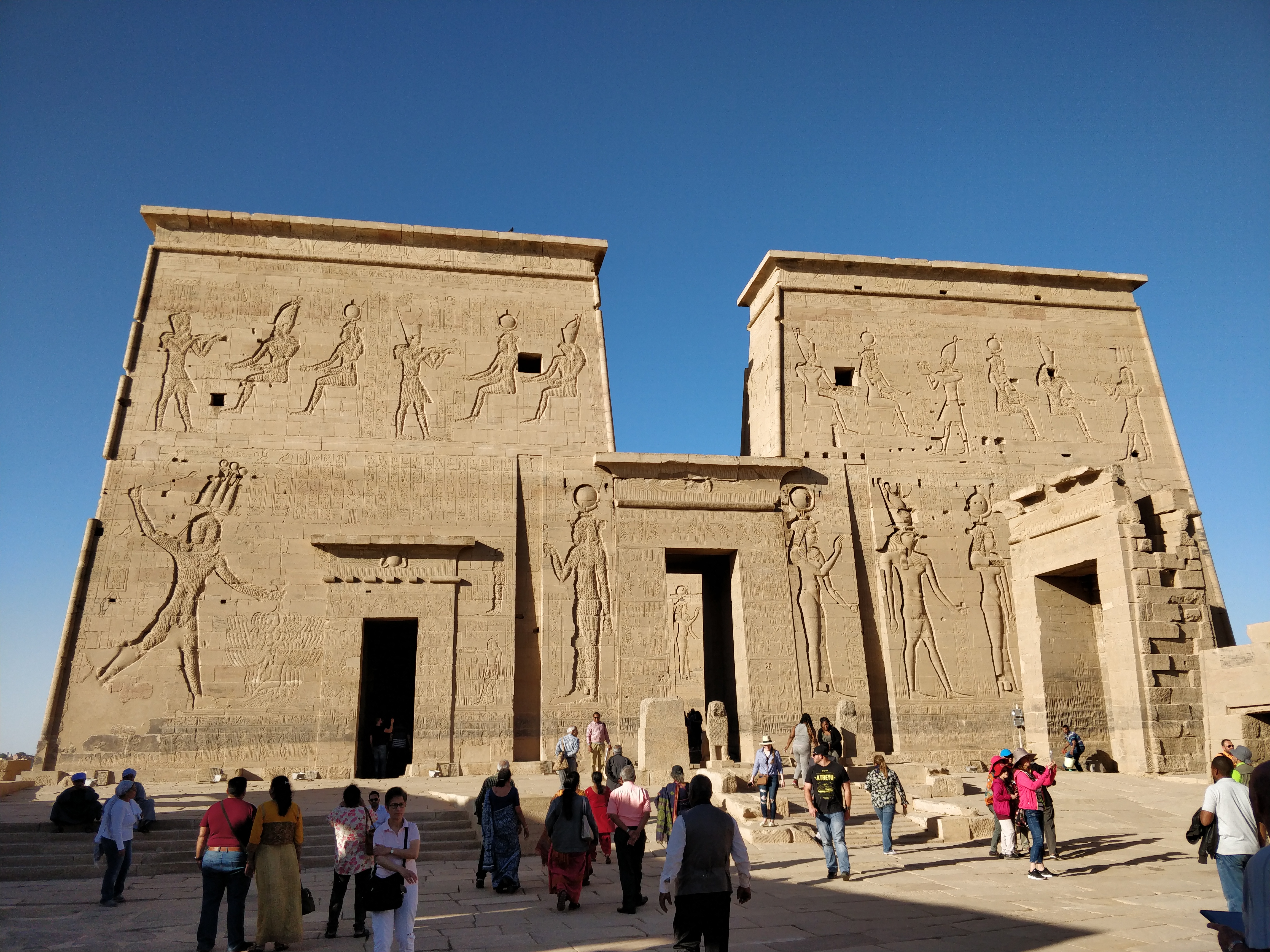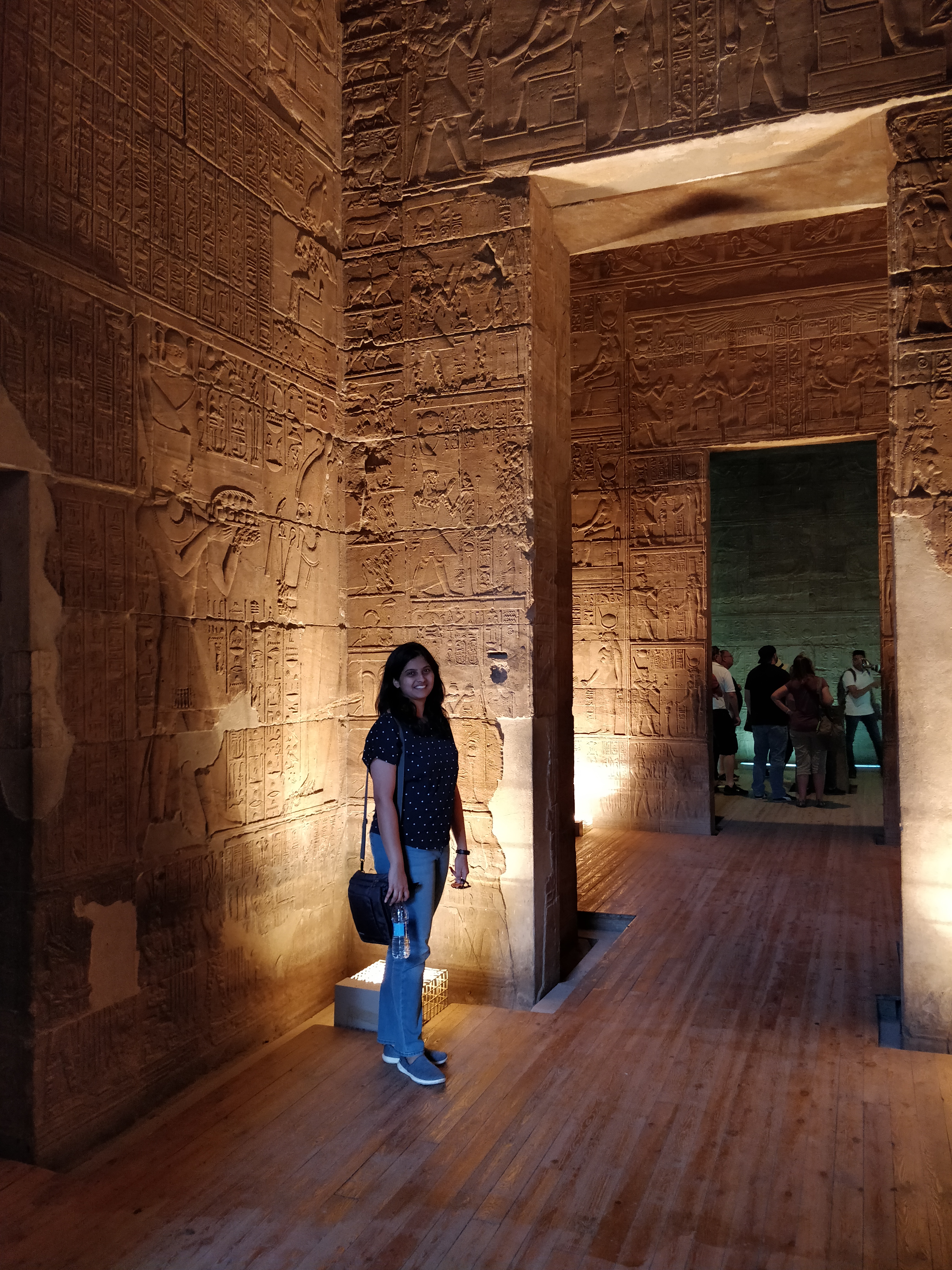 Our guide, Ahmed, had packed a lunch basket for us with some sandwiches, fruits and juice – we had that in the car while we made our way to Philae temple complex. The temple was located on an island and we took a Felucca ride (a small wooden sailboat) to get there. Ahmed explained the story of the temple – it had been relocated here from another island which had got flooded due to the dam.