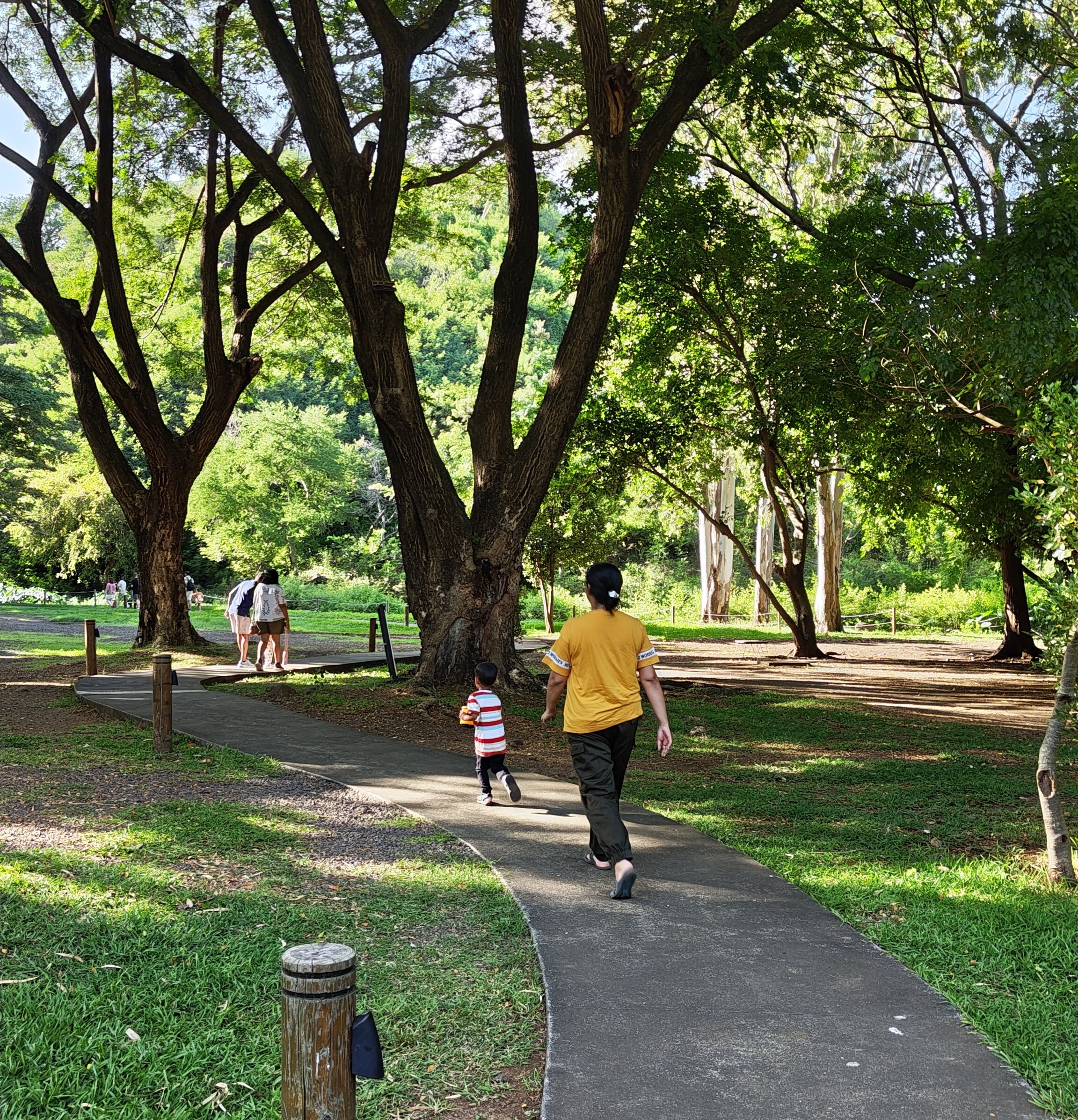 We walked up to the feeding area and picked up some of the treats – it looked like Whiskas for giraffes. The ranger instructed us to just hold our hands out and keep it open. The giraffes would pick up the food on their own. Nam held Parth’s hand as we went forward – to our surprise a long tongue came out and wrapped around his palm, taking away the food. The tongue was LOOOONG! Like snake types! One of the giraffes had a pink tongue and the other had a black one. We were told that the younger ones have pinker tongues and it gets bluish-black as they grow older.