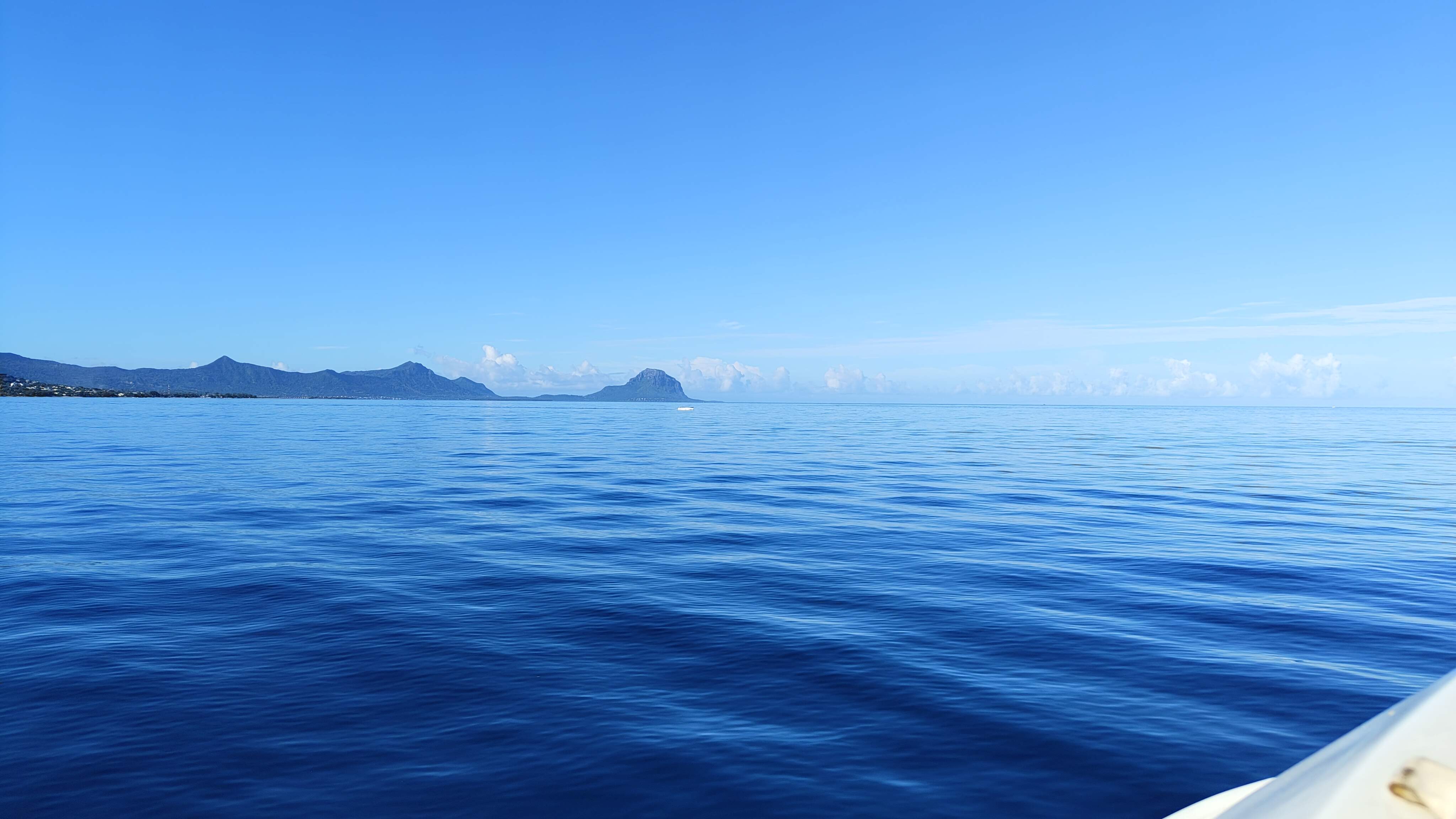 Mauritius sits on a submerged plateau in the Indian Ocean. What this means is that most of the beaches are very shallow, don’t have tall waves and are perfect to enjoy the water even with young kids. It also means that at the edge of the plateau, the ocean depth plunges. After 30 mins of our ride, our boat captain told us that we were now at a point where the ocean was more than 2000 metres deep! I must admit – that made a tiny little shiver go down my spine.