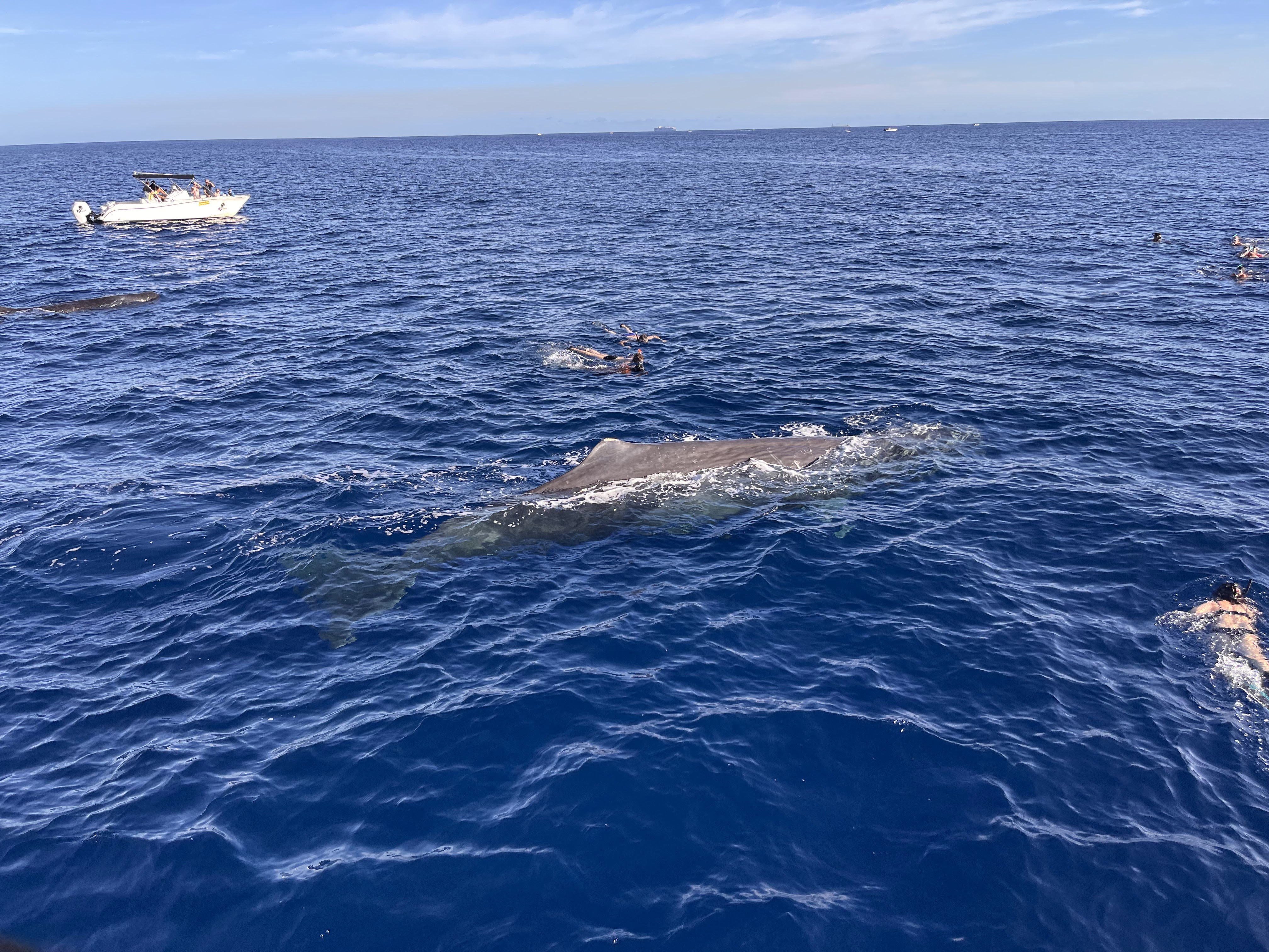 Whales, as you can imagine, do not like humans jumping into the water next to them. In fact, swimming with whales is banned in Mauritius. However, we saw a lot of people doing it and their agents were enabling it. The company we chose was very strict about ethics and made sure they kept their distance from the whales. We got to see 3 more whales during the excursion!