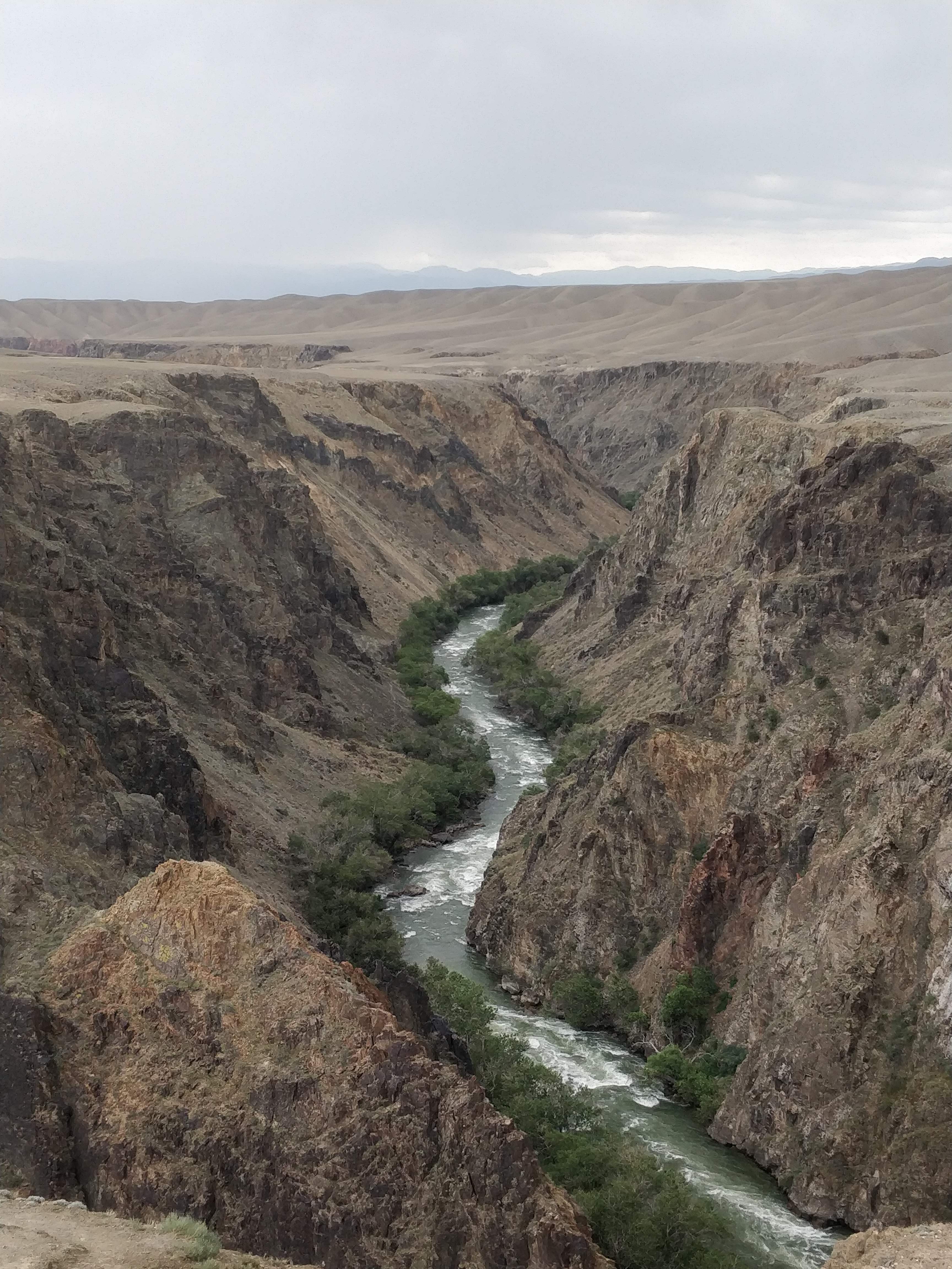 We could see the Charyn river flowing in the depth of the canyon and a line of trees on the banks of the river. That was the only green stretch for miles! The canyon was so named because of the dark colour of the rocks. It wasn’t as jet black as we expected but it was definitely blacker than the rocks around. We clicked some photos and moved on towards Kolsai.