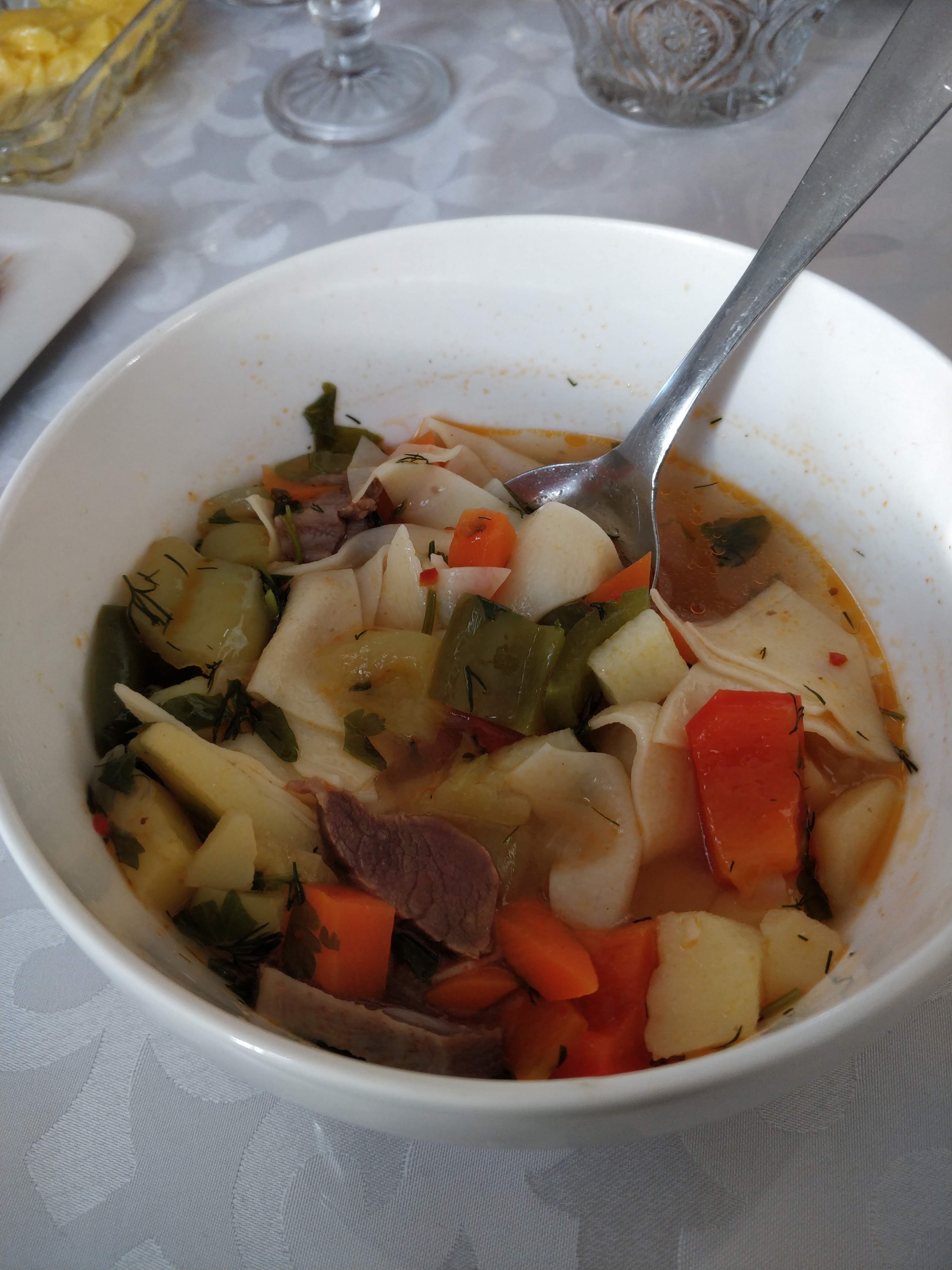 After about an hour of driving at around 12:30pm, we got off the highway and stopped at a restaurant for lunch. The menu had a lot of lagman (noodles) options. The taste was really different from the one we had in Uzbekistan. The Uzbek one was more mild and was mainly tomato sauce. This one had a lot more garlic, had a dark sauce and was spicier. Very similar to the Chinese food we get in India. The khachapuri was also like a pizza instead of the puff pastry we got in Uzbekistan.