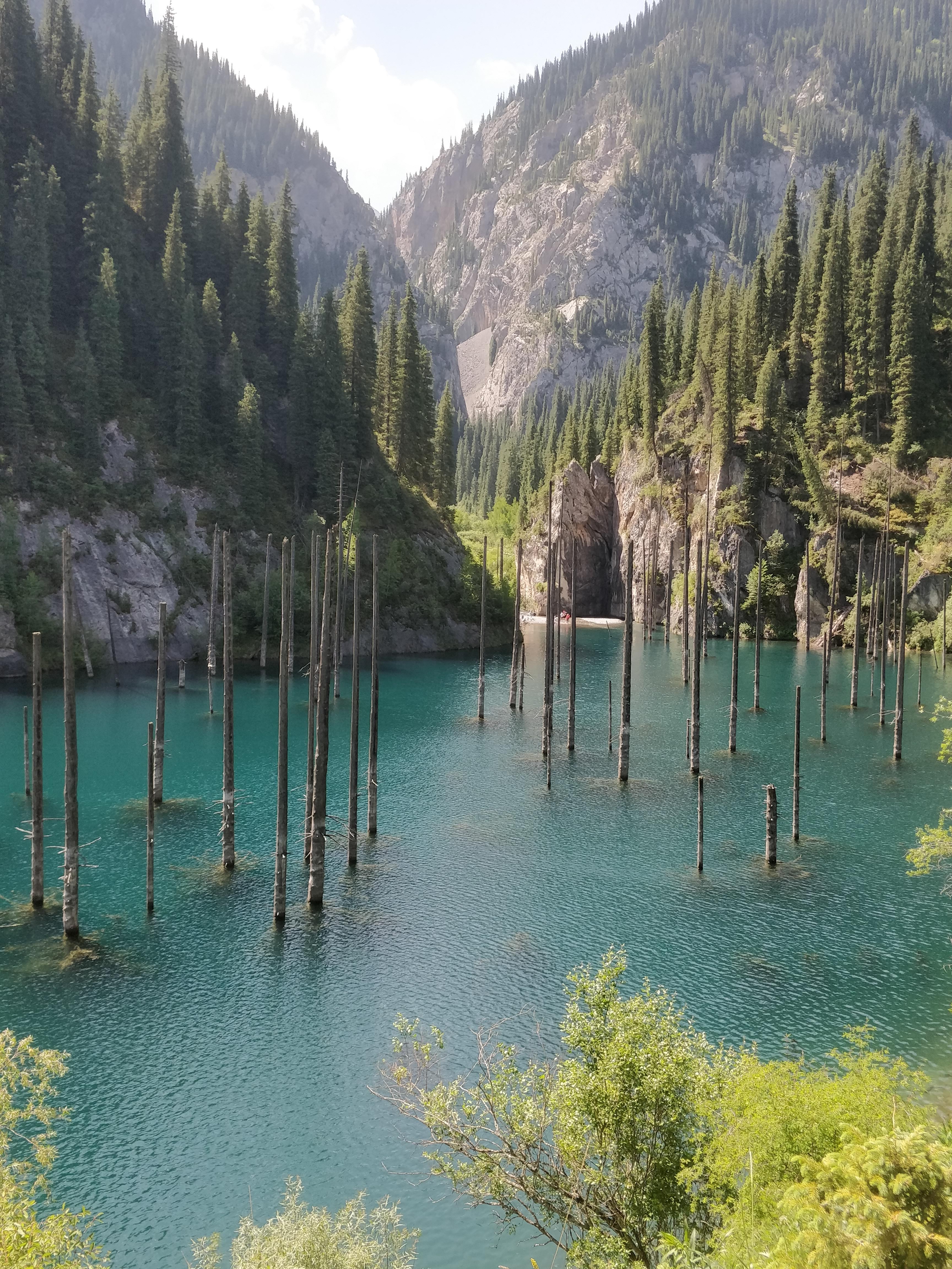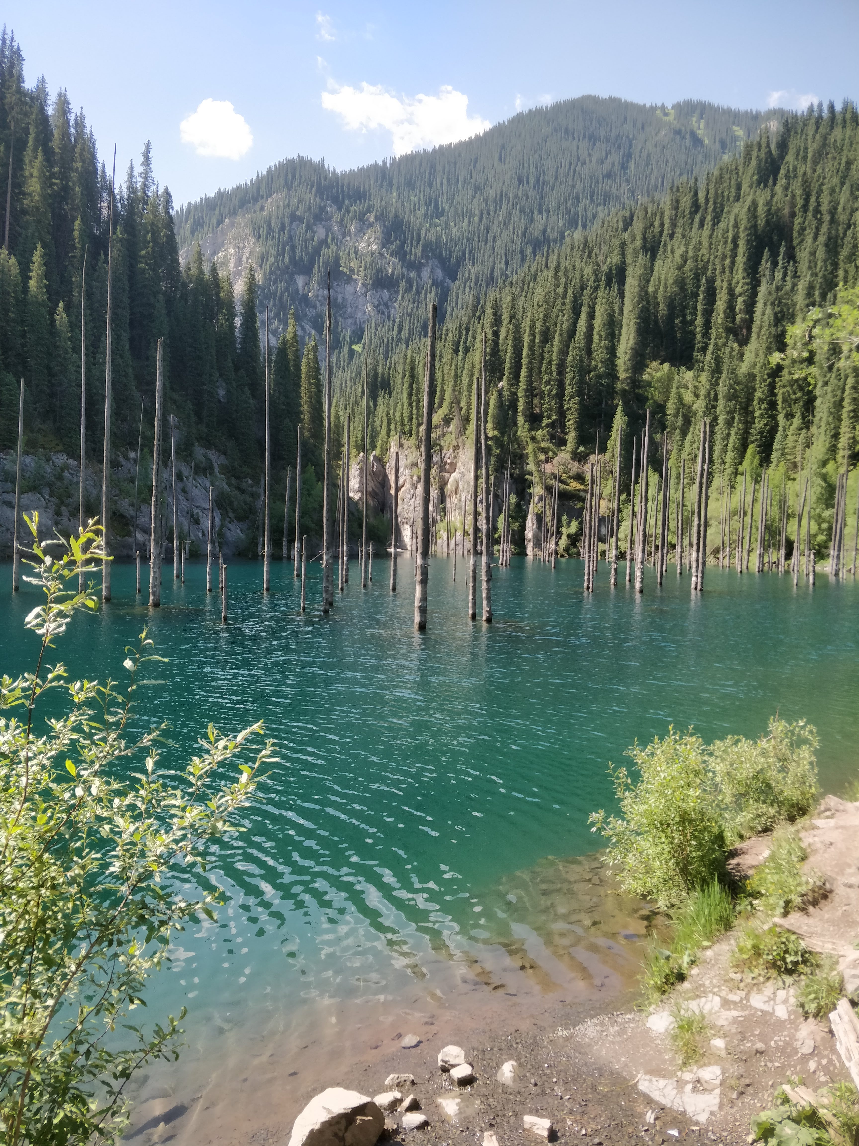 We clicked a lot of pics. We also spent some time standing at the viewpoint and enjoying the remoteness and silence of the place. Such pristine beauty was best enjoyed in this kind of an environment. Aida told us that we got to enjoy this because we came early. By evening, even Kaindy would be full of tourists! During winters, the lake would be completely frozen and the mountains covered in snow.