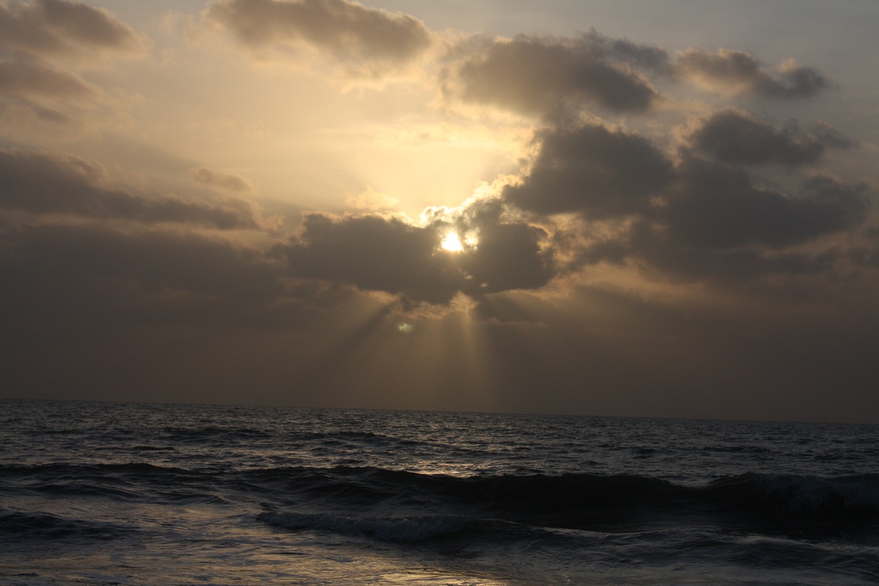 I settle down on the sand and look out into the open sea (shielding my eyes from the sun). The powerful rocks catch my attention. Waves ram straight into them but have to part to go around. The rocks are unwilling to budge to the rash torrents which are trying to push them off their stand. They tell me that there are things worth fighting for even if the mighty ocean is against you. But then the sea does have her way, chipping and eroding the hard boulders. So the outside world does affect one’s nature. Keep good company – the rocks say. It affects you no matter how strong you are.
