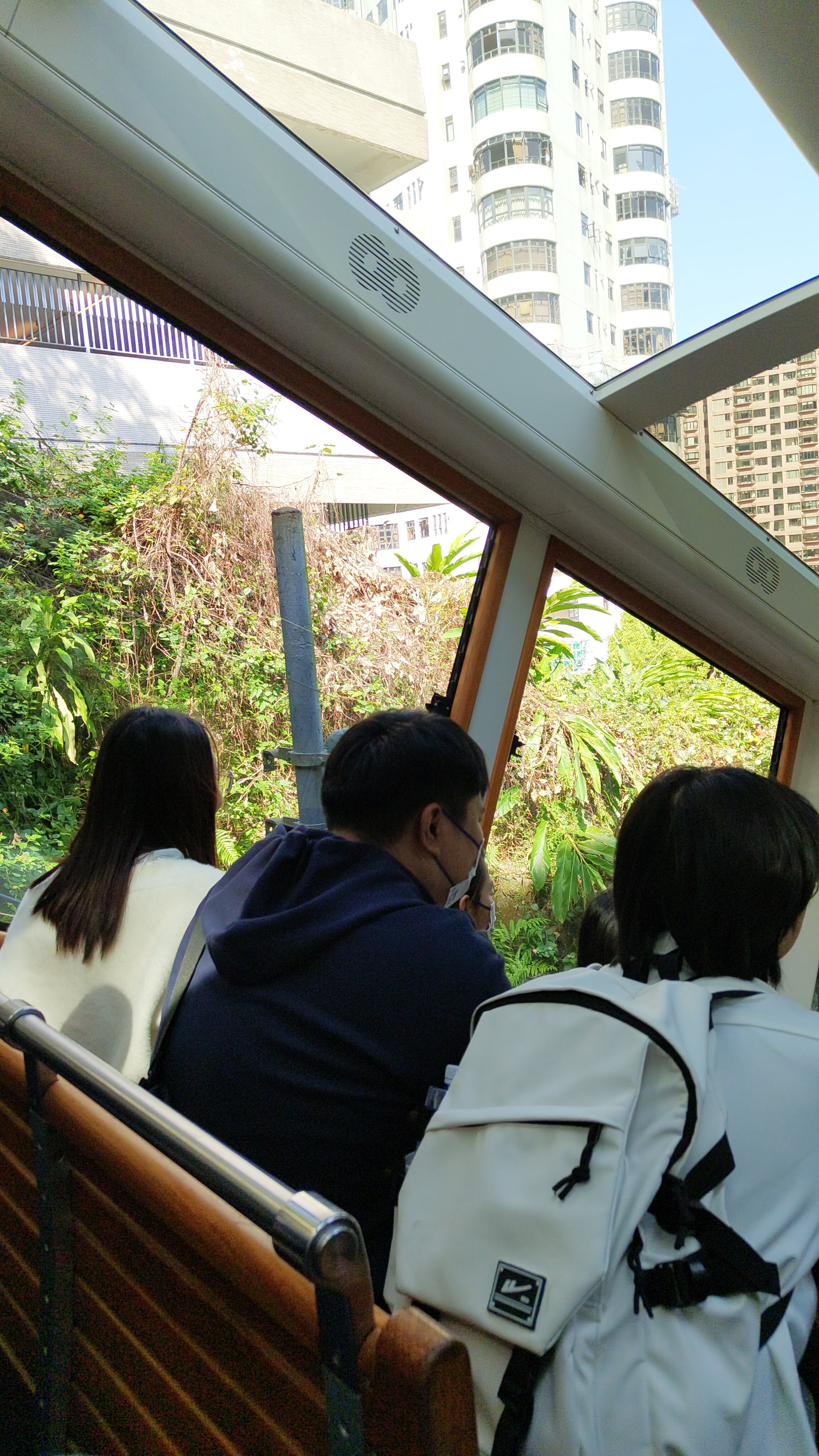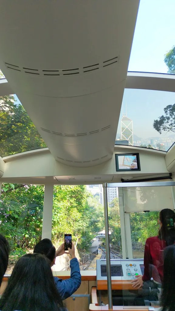 Nam had already taken the peak tram on her way up. So, she knew the best seats for the way down – right in front were the few seats that faced downhill. We managed to get those seats as most people got into the first few doors which were at the back of the tram. The seats really enhanced the experience and we could see how steep the tram actually went. It was more like a funicular!