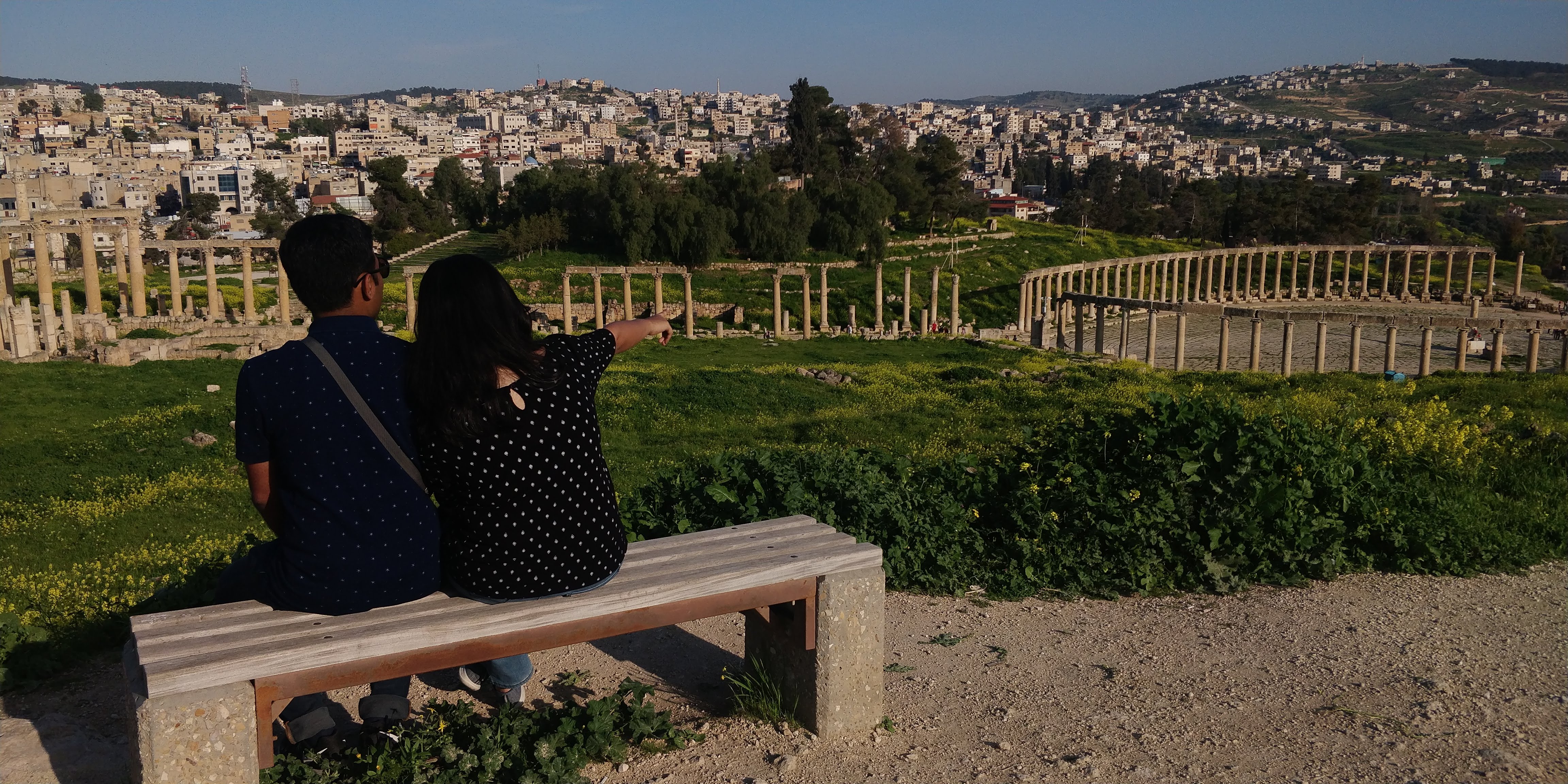 Walking through the colonnaded street was one of the highlights – the stones which formed the street were the same on which people walked centuries ago. There were even marks left by chariot wheels! As we were visiting in March, the valley was a lush green and beautiful – the panoramic view of the city was amazing. We spent around 2-3 hours here before heading back to Amman.