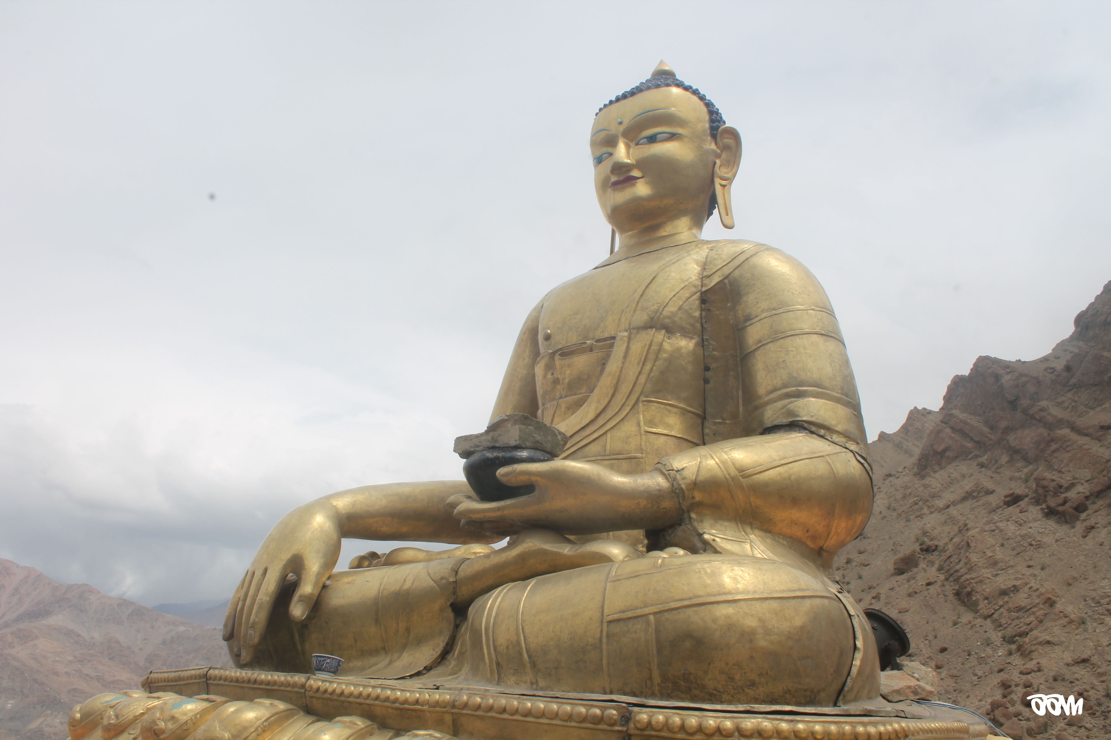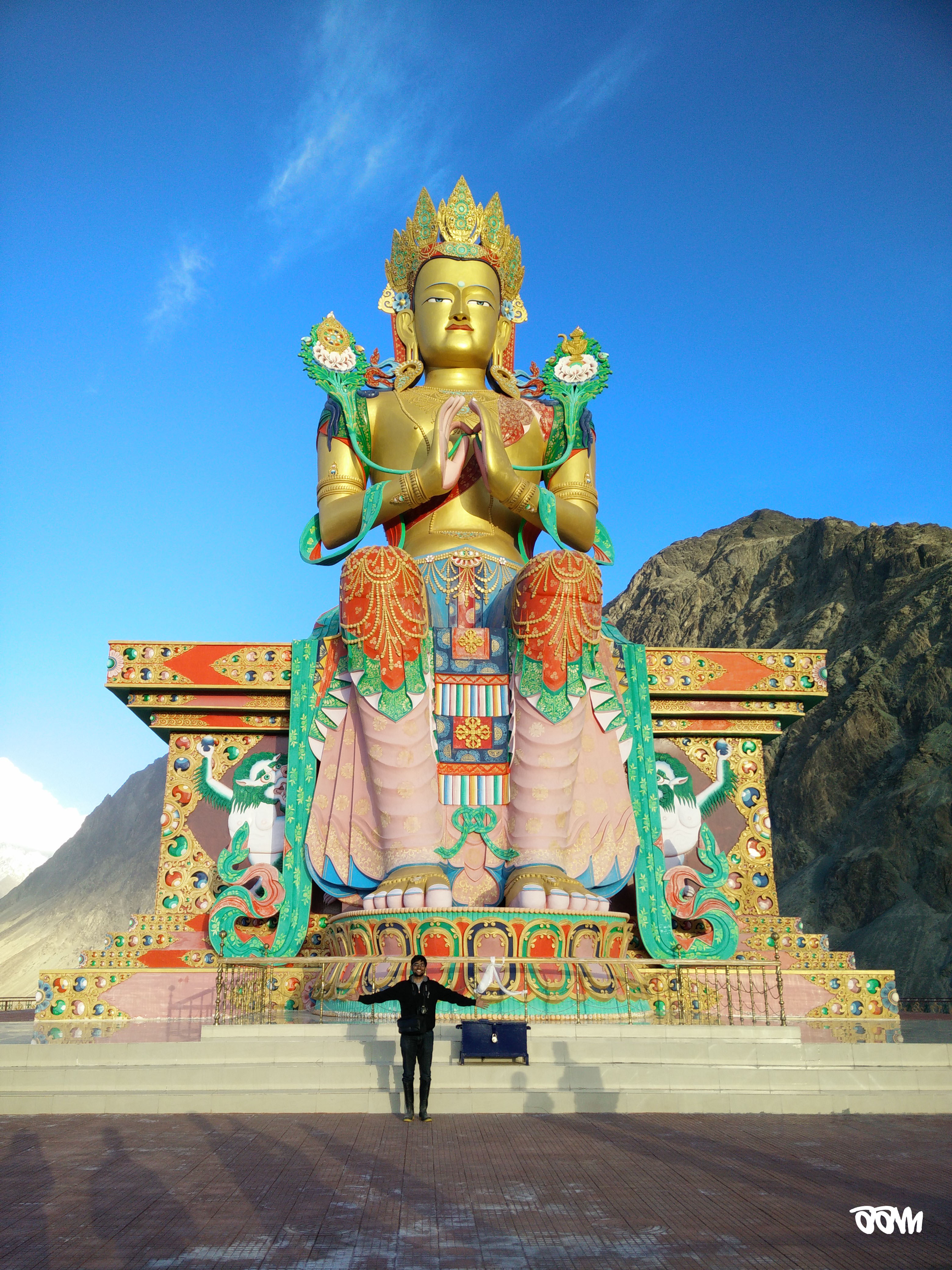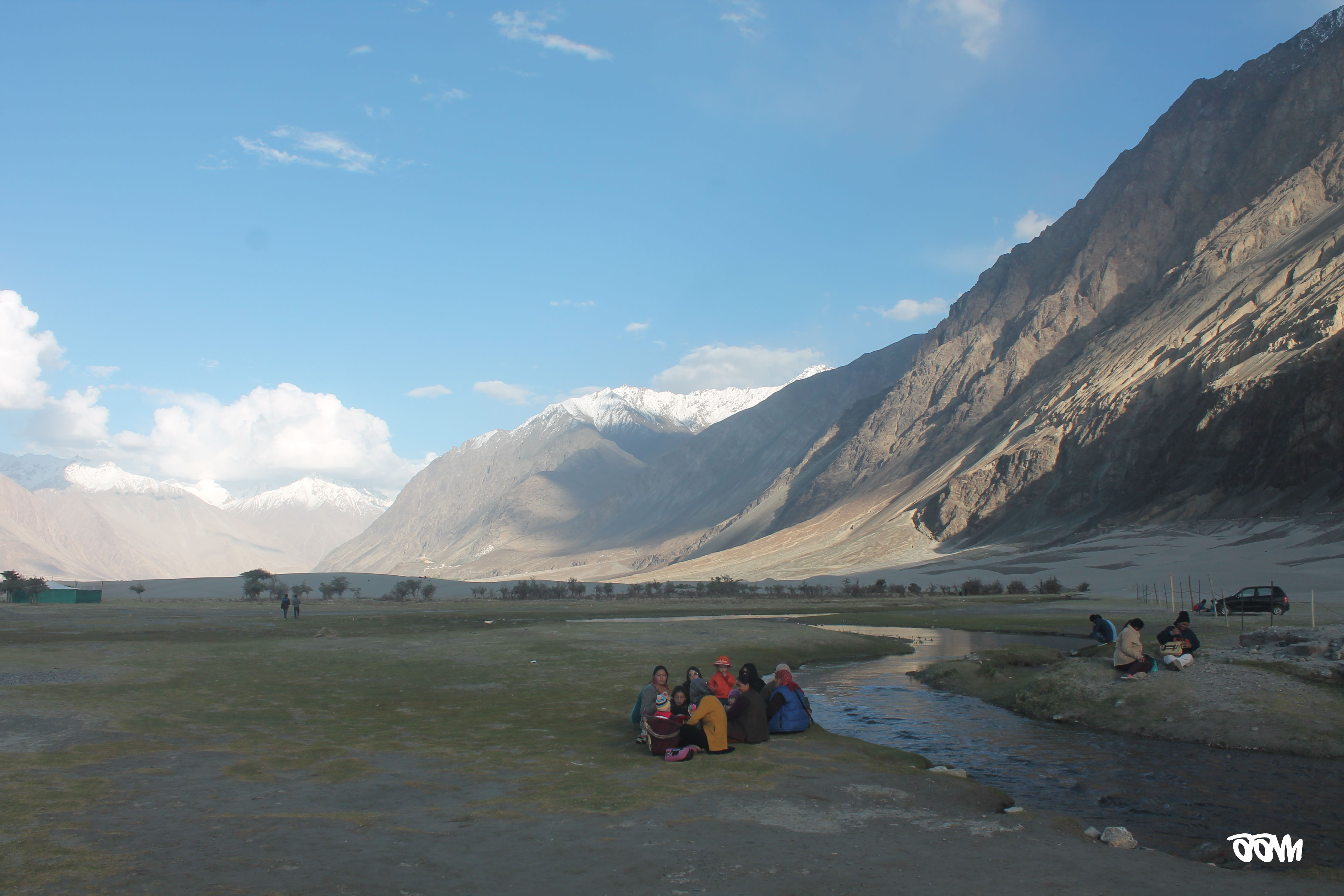 Hunder is a crazy little place where you run out of words when you try to describe the place. You can see sand dunes, huge rocky mountains, snow-capped peaks, grassy plains and a river – all in one frame! The mountains seem as if they have been shaped out by years and years of water flowing on them. We went camel riding on the famous double-humped camels. 200 bucks for 15 mins but definitely worth it! There was a festival going on as well with a lot of stalls and small gambling games happening all around. After the camels, we moved to Diskit (we had crossed Diskit on our way to Hunder).