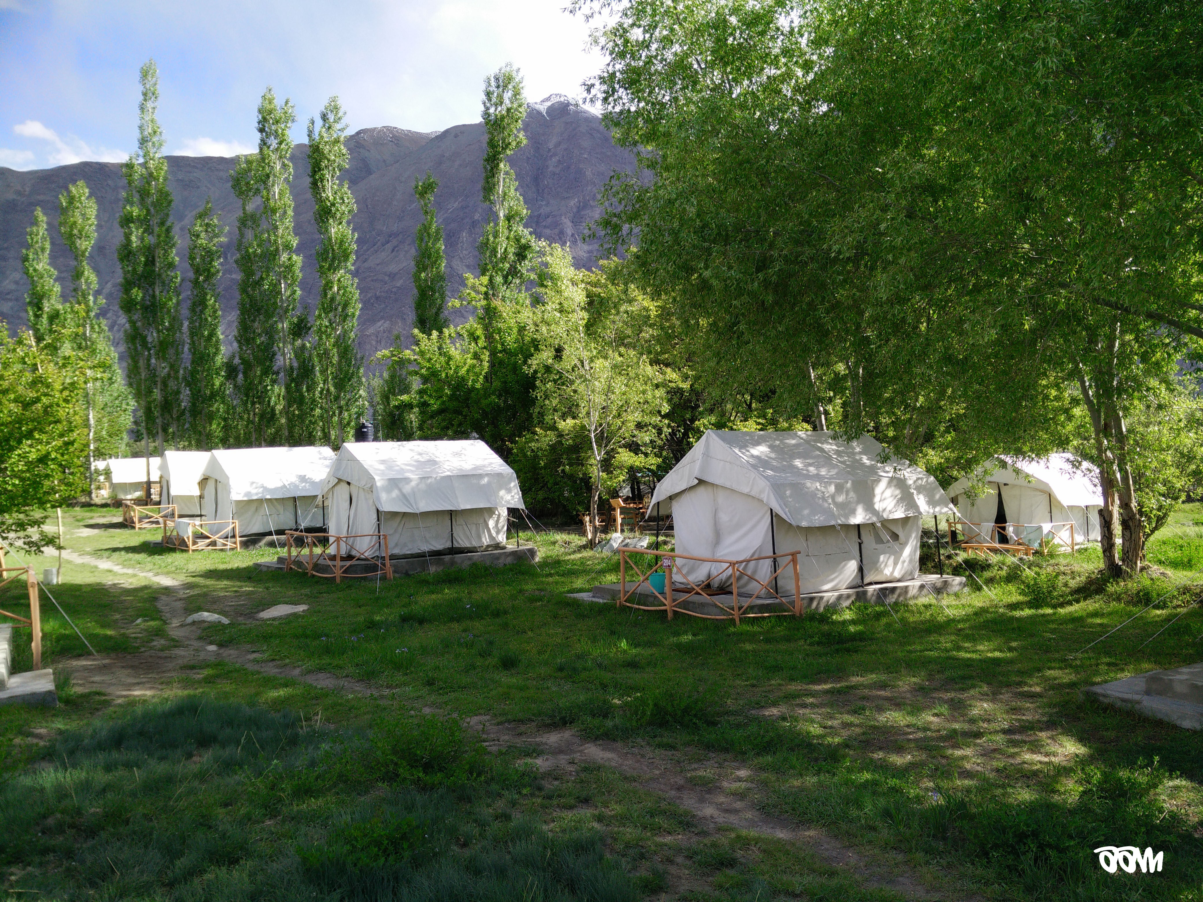 Meanwhile I had other things to worry about as my stomach refused to do its job. I just had some local bread for the entire day – the bread is called Khambeer and it’s the most filling thing ever! There were plans made to visit the Panamik hot springs but most of us didn’t have enough petrol and no one was in the mood to risk it. So we chilled all day in the beautiful campsite. The campsite was indeed like a dream – a rich green clearing with trees, white tents all around, wooden fences and snow-capped mountains right behind. Words can’t describe the beauty of the place.