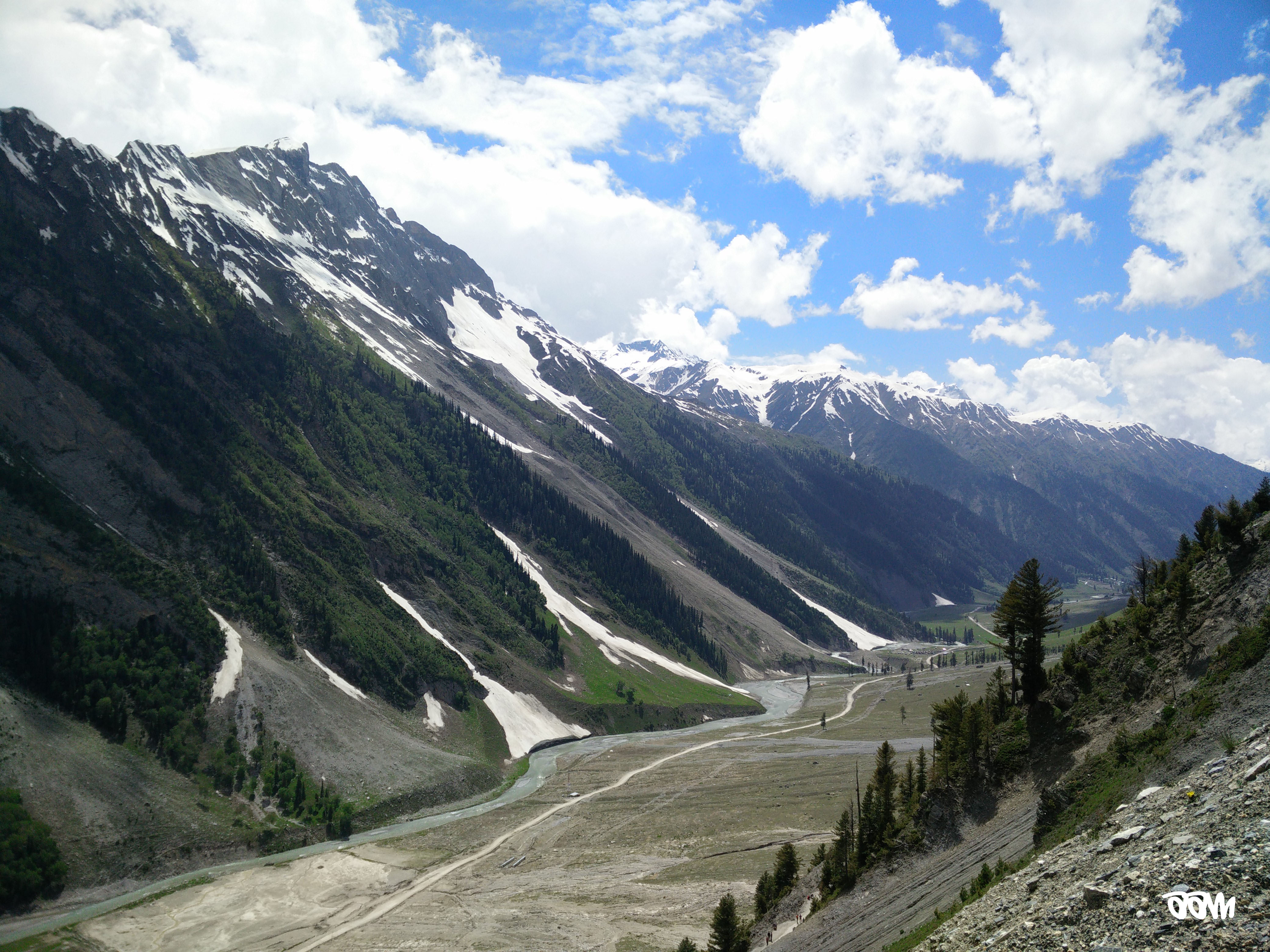 It took almost two hours for the road to get cleared and because we were on bikes, we snaked our way around the traffic and reached Sonmarg. The roads were beautiful with forests on both sides and a full-flowing river on one side while the road curved alongside it. Amazing!