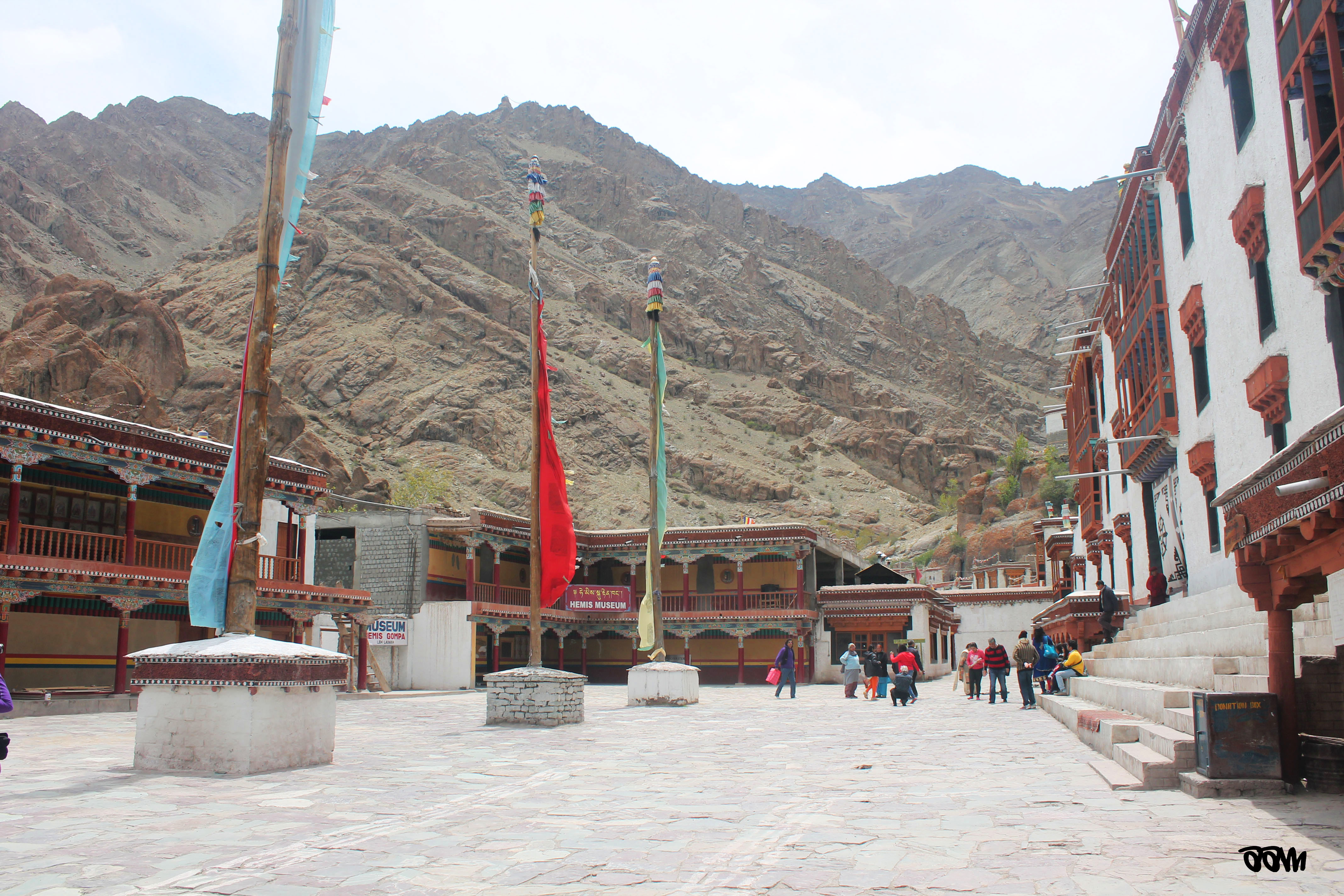 Our first stop was Hemis Monastery – the oldest monastery in Ladakh. The temple and monastery are hidden behind mountains hiding them from the view of the world. It was hidden in a way similar to the Ajanta caves in Aurangabad, Maharashtra – you could find it only if you wanted to. There are two temple halls – one where tourists could click pics and one where you couldn’t. The reason is that the second one has monks offering their prayers. The room was completely dark except for a few spots of sunlight peeping in through the few blocks of glass placed on the roof. You get transported to a different world inside – there was a loud and deep humming sound due to the chanting of the monks. It was quite similar to the experience we had at Bhutan (read all about it here)