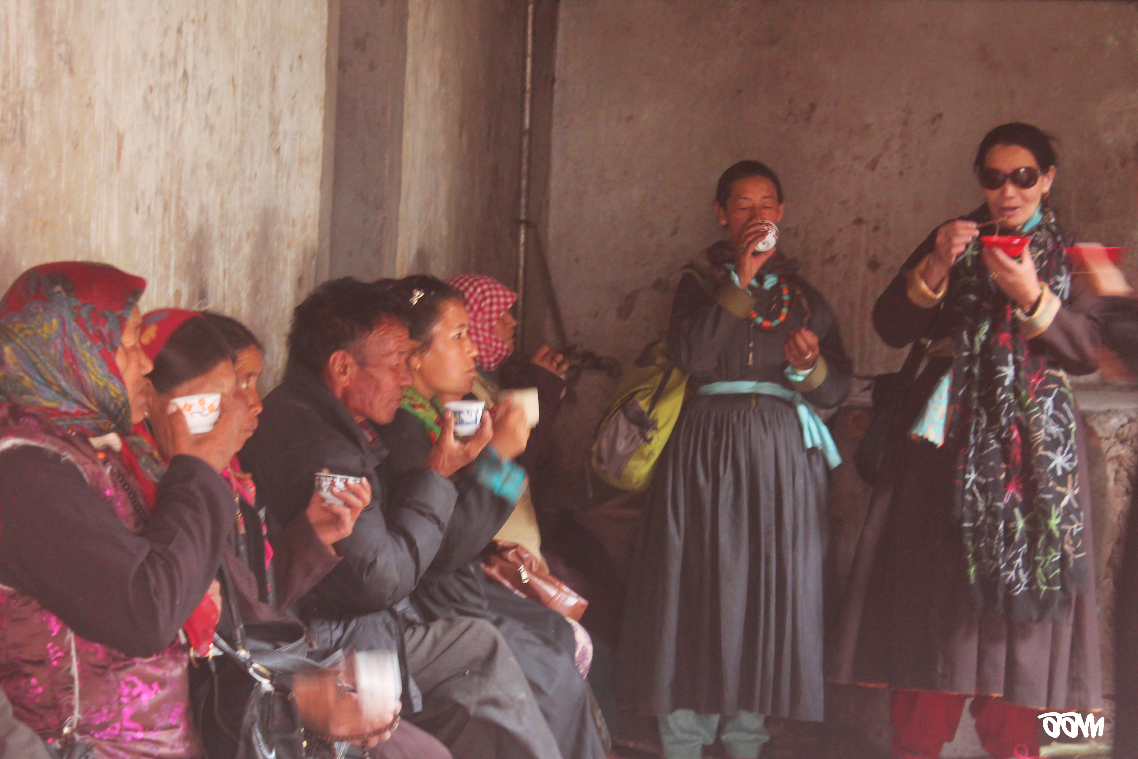 The most prominent person in the room is the head priest who sits near the photo of the Dalai Lama (it isn’t the current Dalai Lama). The chant grows louder all around you. When you look around trying to find the source of the sound, you see heads popping out of the dark occasionally- monks of all ages sit in every corner and chant along with the head priest. It is eerie at times. Not really sure of what to do, I stood in line along with some people who looked like visitors. We walked up to the Dalai Lama’s photo and bowed down in prayer. We did the same in front of the Buddha’s statue as well. The monks read the prayers off long horizontal pieces of paper. Once they finished a prayer, they would drink out of their bowls.