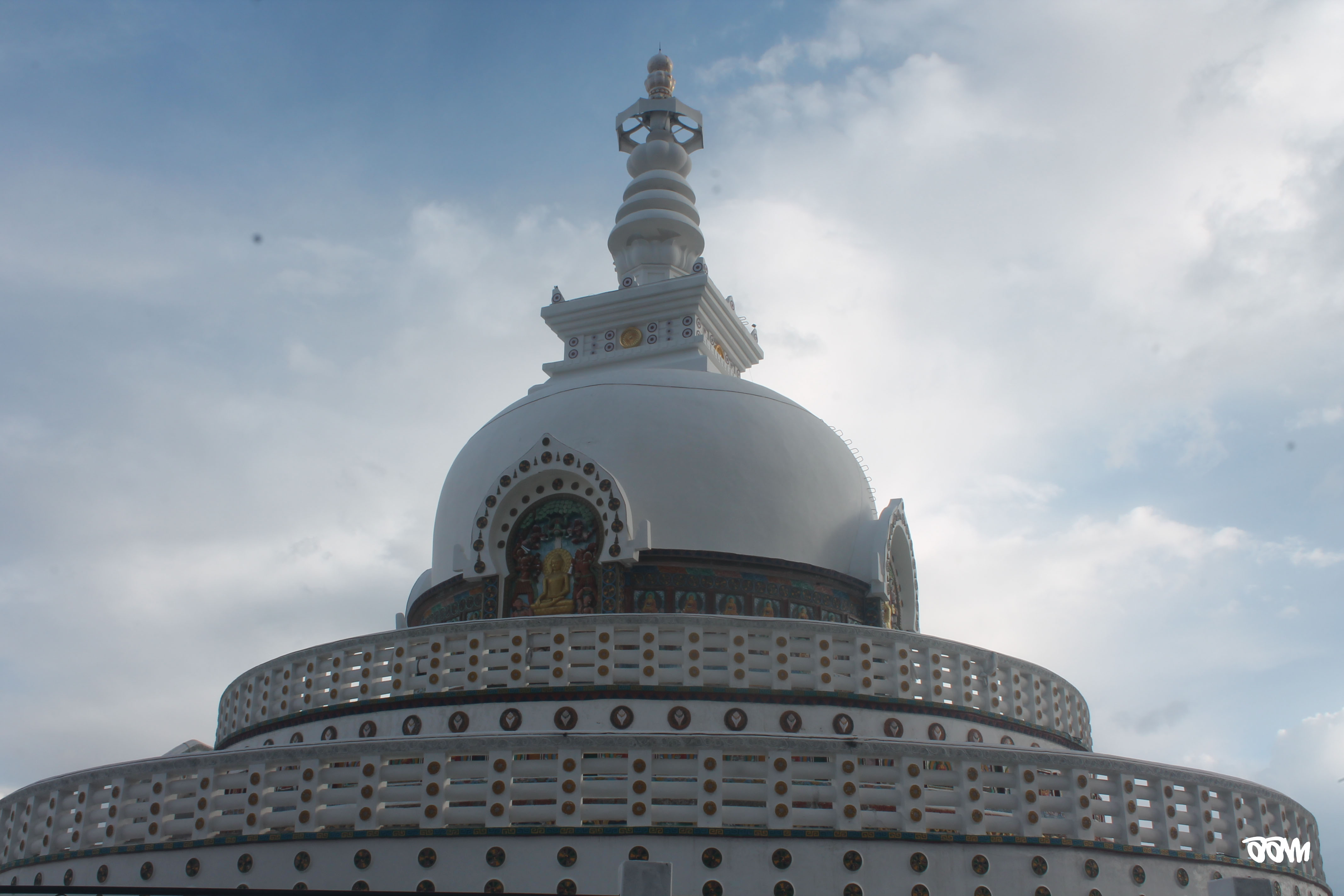 Luckily we got an amazing view of the valley complete with a beautiful rainbow! The clouds gave an amazing view of the mountains with different shades of brown all around with white snow on top. Our last stop for the day was Shanti Stupa in Leh.