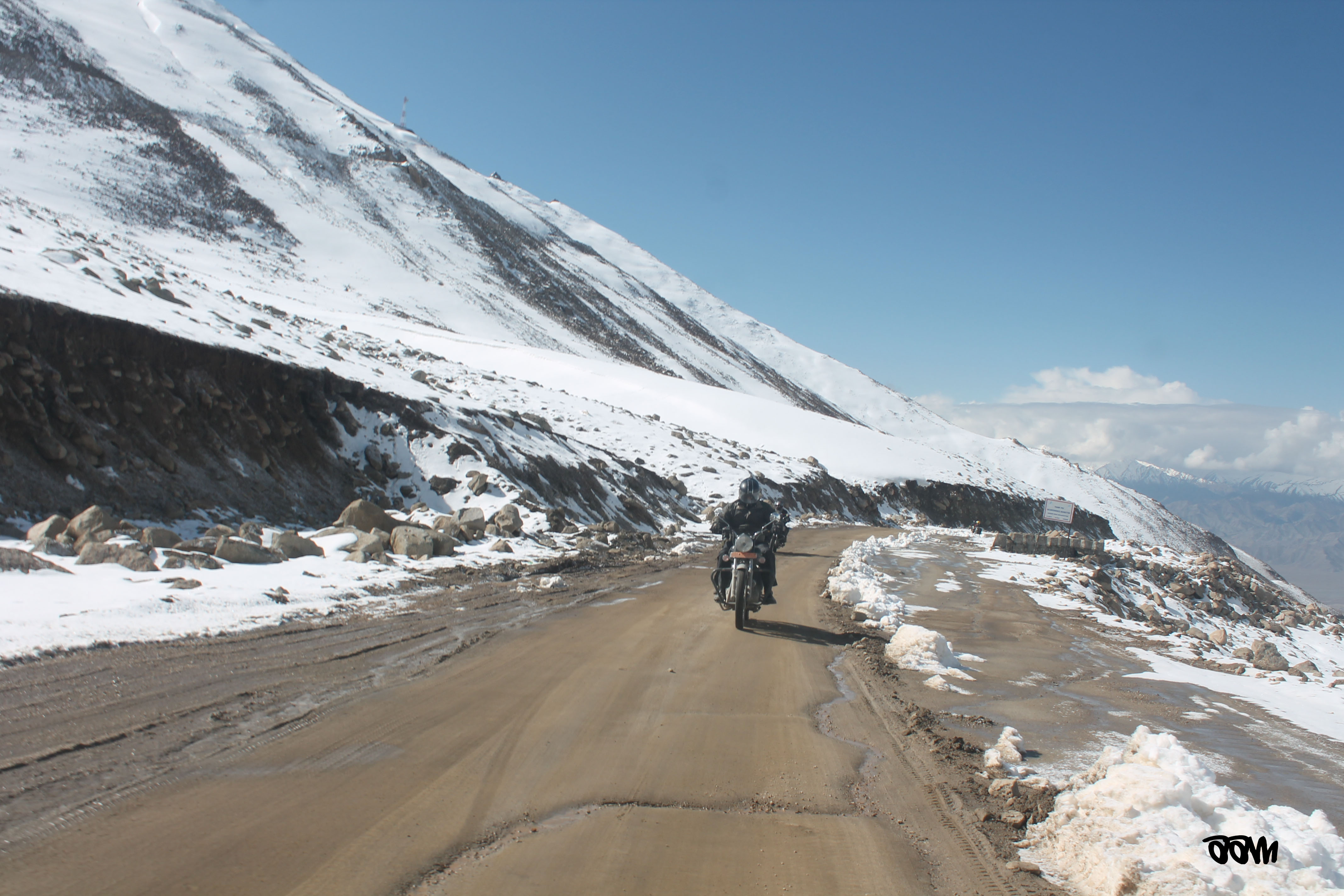 As soon as we got onto the road, we were welcomed by a sign claiming “You are on the highest motorable road in the world”. Wow! That felt awesome! The road was good up to a place called South Pullu. From there the ascent began – the tar road ended to make way for a dirt track.