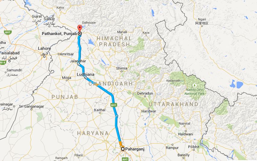 The hospitality felt amazing – these people were genuinely happy helping out and treating strange travelers on the road. I couldn’t imagine any city where people would be even half as happy to help out others. As we passed through the villages, the first sight of the mountains came into view. We were nearing Pathankot and I realized that Punjab was indeed a very beautiful place. We reached our hotel in Pathankot by 5pm. It was an amazing ride – the most distance I’ve ever done in a single day!