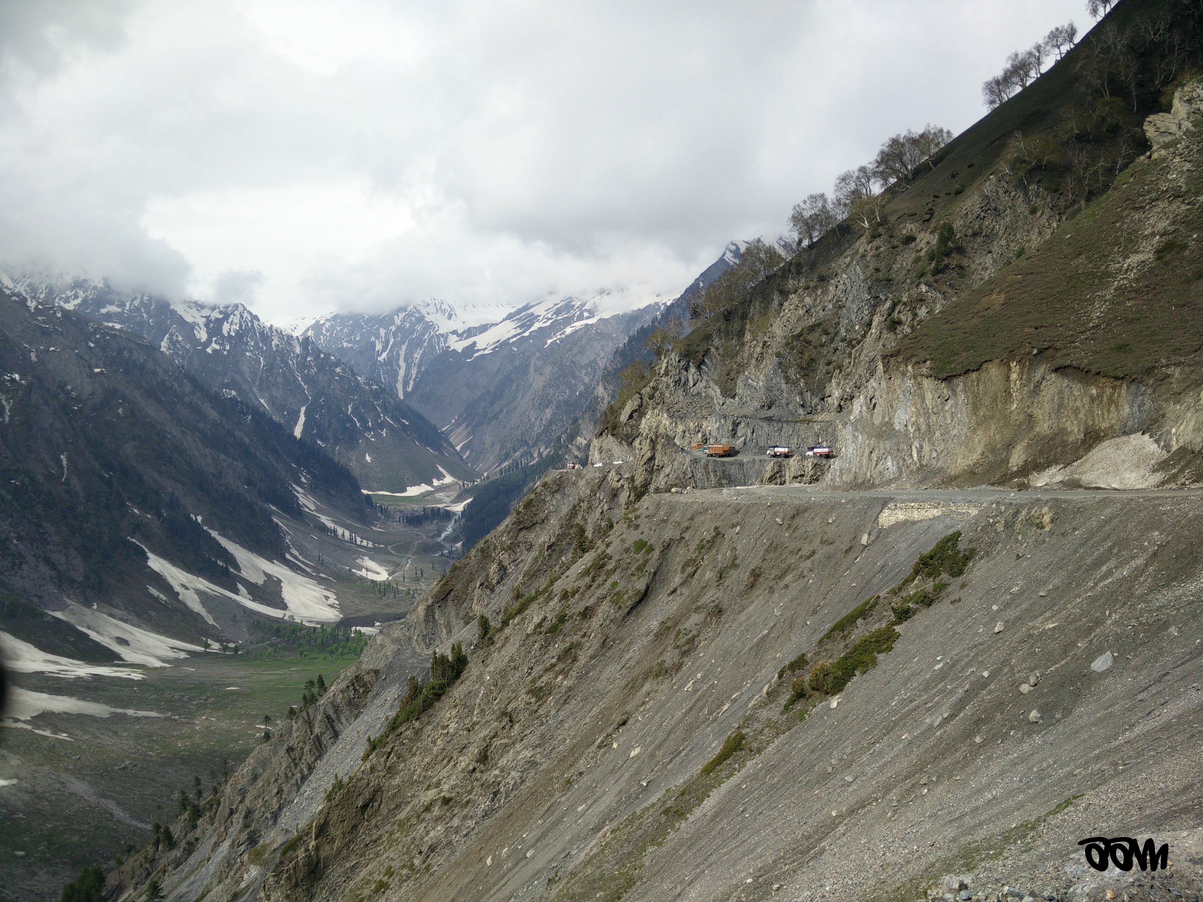 We stopped and did sledging in the snow. It was awesome fun sliding down the steep slopes on the sledge. Now began the descent which was as challenging as the ascent if not more. There was more water here with “Paagal-naalas” all over the place. There were snow walls all around. The snow cleared making way for beautiful green pastures. We reached the check-post to the Drass sector (this was the second coldest region on earth after Siberia).