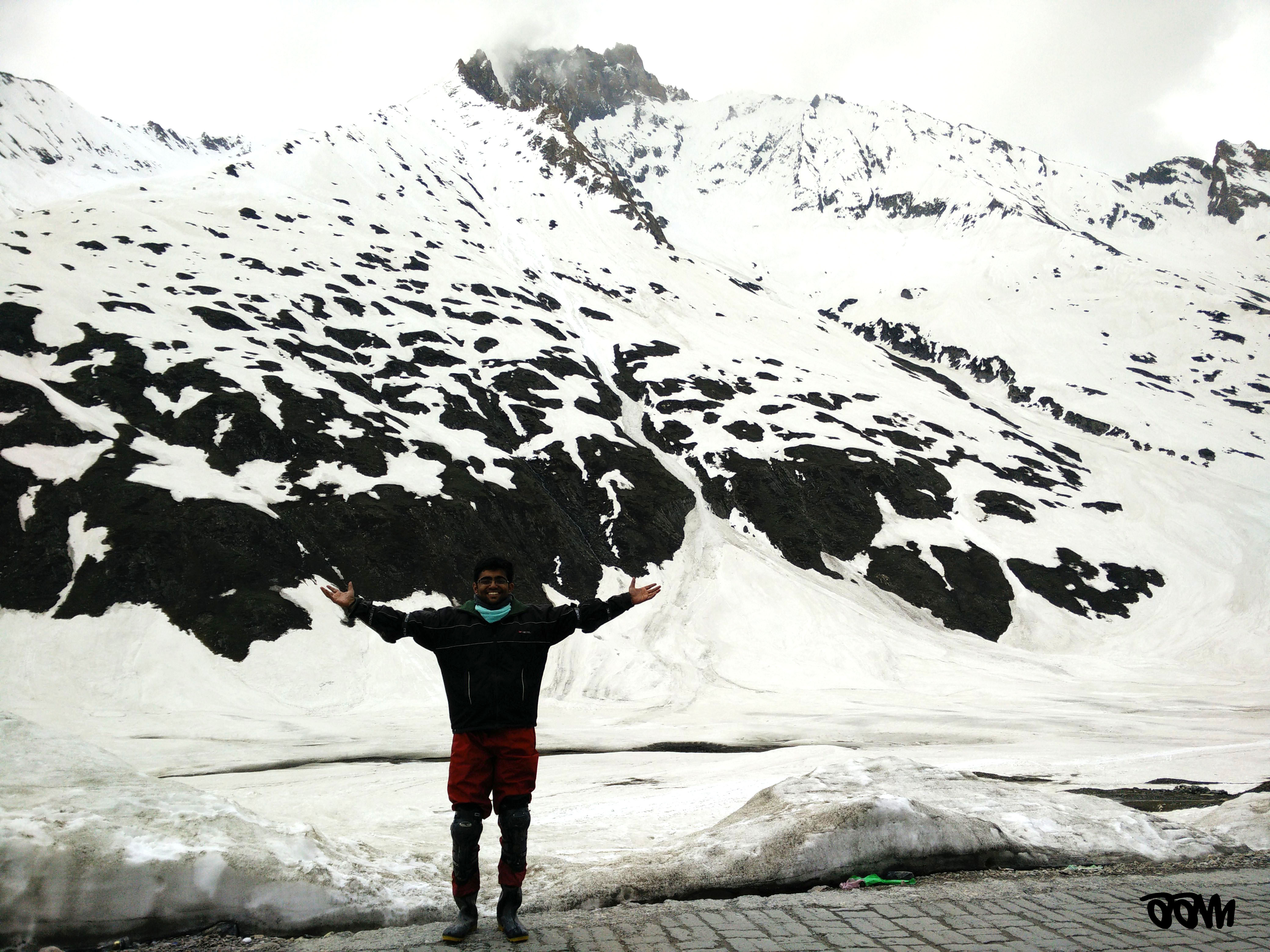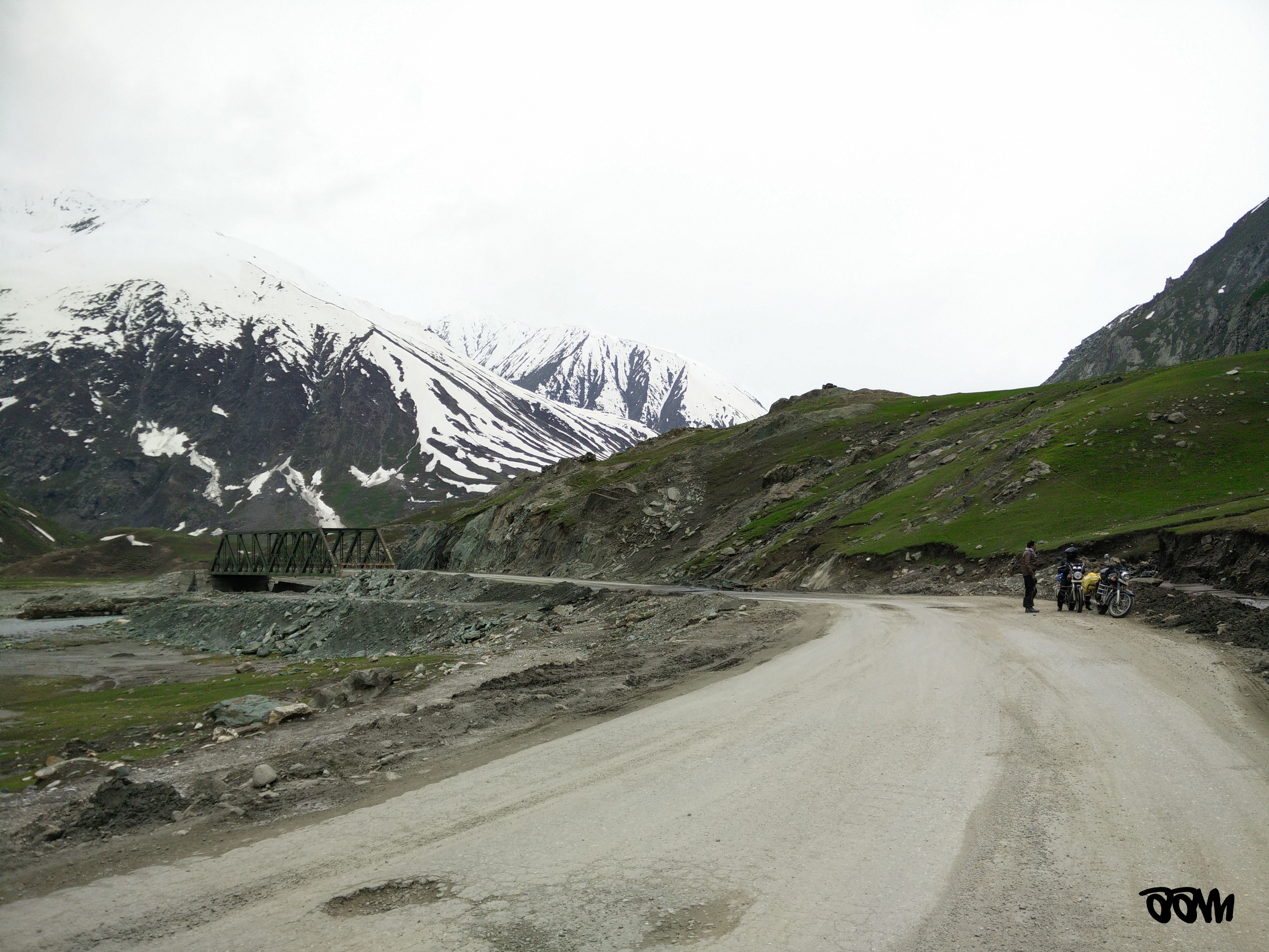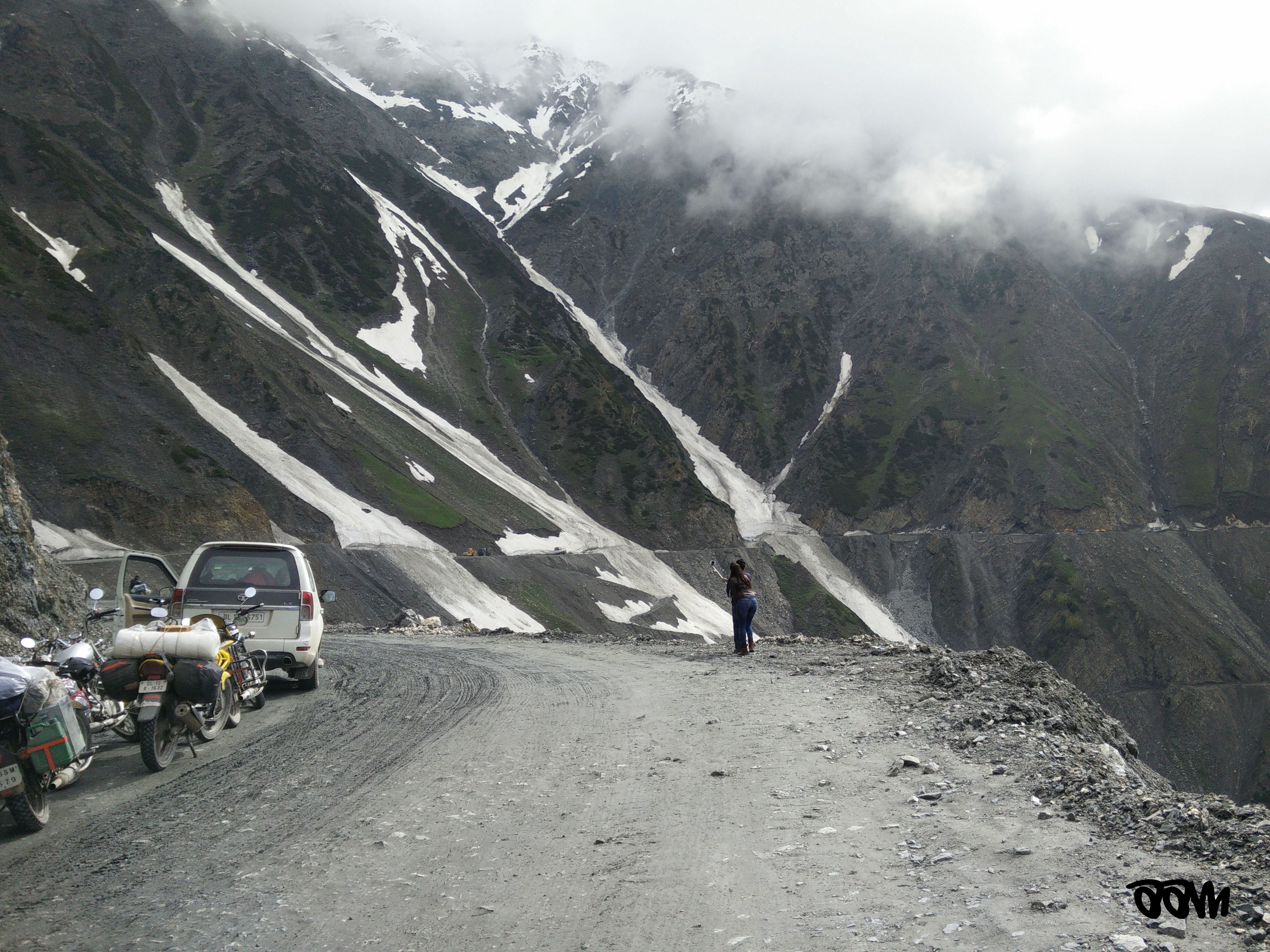 The rain and cold got more intense as we got closer to the mountain pass. My hands were freezing and became numb – it was not possible to hold on to the clutch and brakes, which was not a good thing while riding on a road with heavy vehicles coming in the opposite direction and the cliffs on one side ready to swallow us. We saw snowy mountains right in front of us which explained the cold.