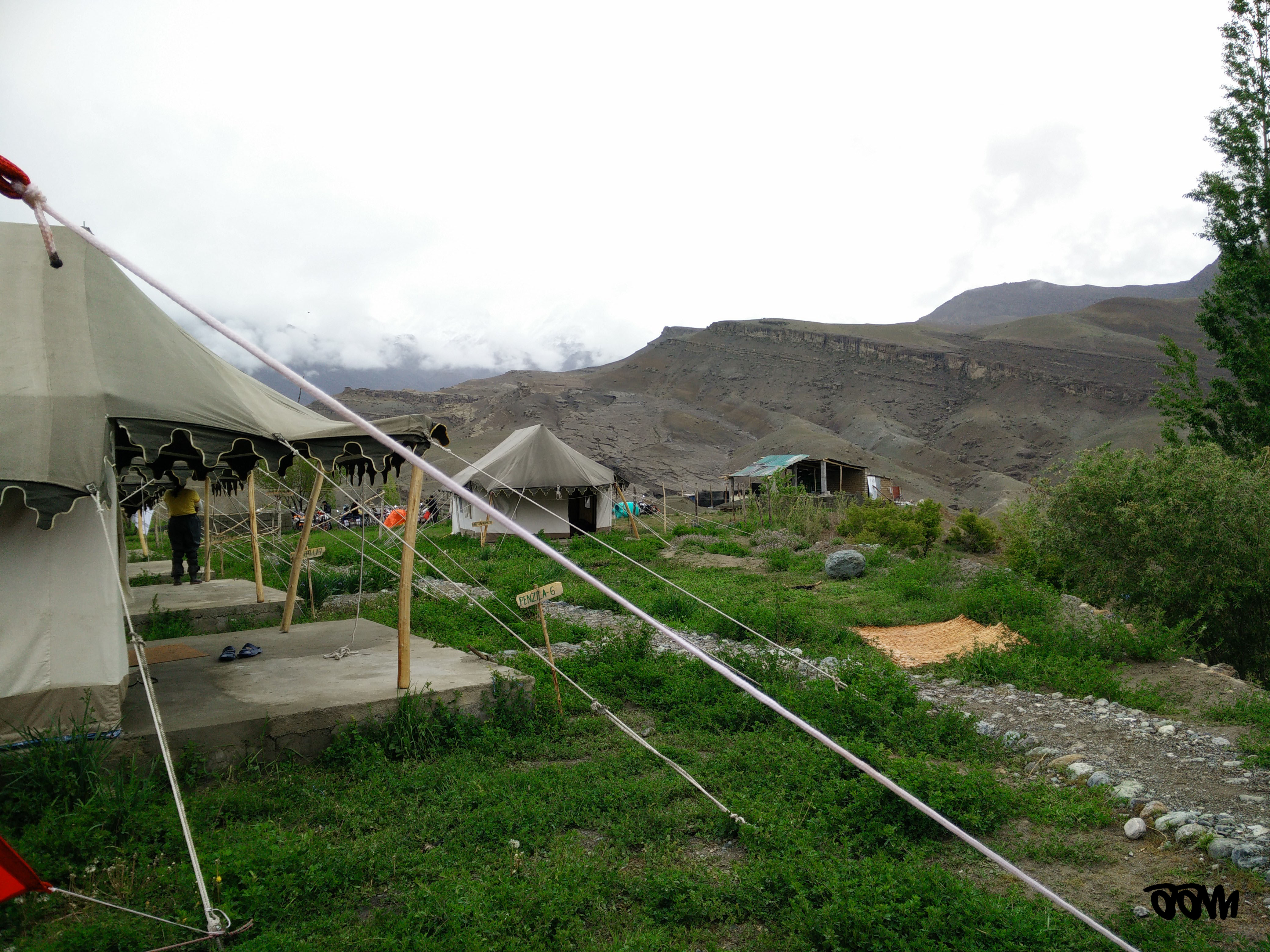 It started raining but we managed to reach our campsite by around 6pm. It was a scenic camp with tents in the green valley and overlooking the mountains in the distance.