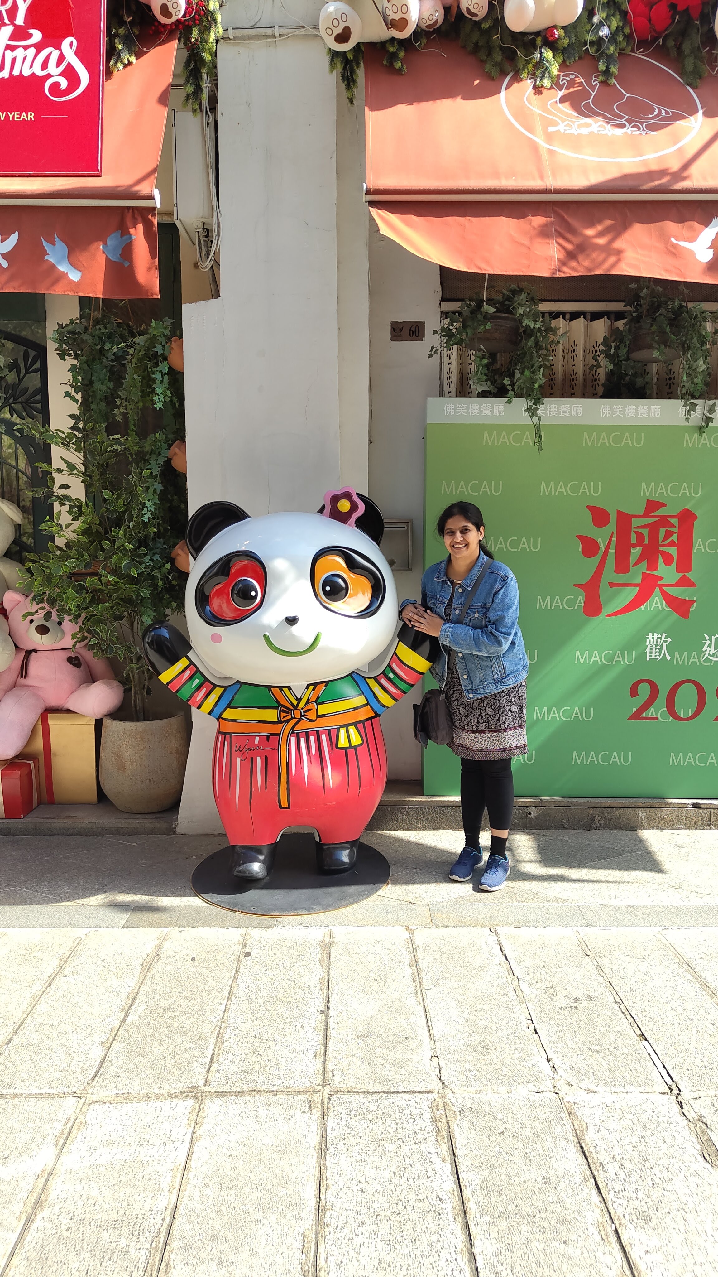 We walked along Rua de Felicidade, posed with the Panda statues and tried freshly baked almond cookies at a local shop (didn’t like them at all!). We crossed the Senado square which had beautiful tiled mosaic floors.