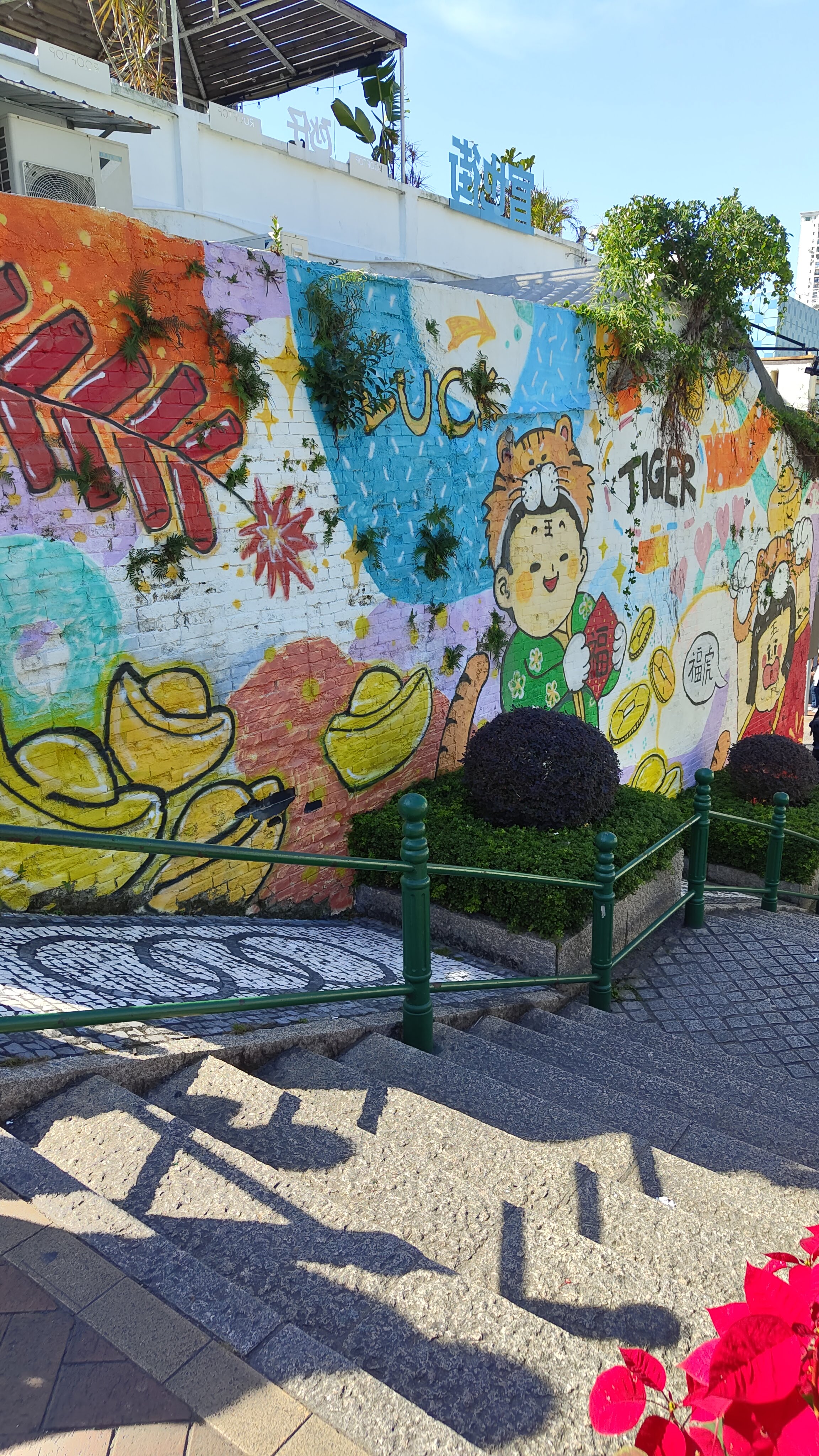 The best strategy that we could figure out for Macau – find a bus stop somewhere near the intended destination and walk. Better than standing paralysed at the bus stop trying to figure out the exact bus stop. This strategy led us to a random bus stop which had an inclined elevator. It looked more like a funicular and it was free of charge!