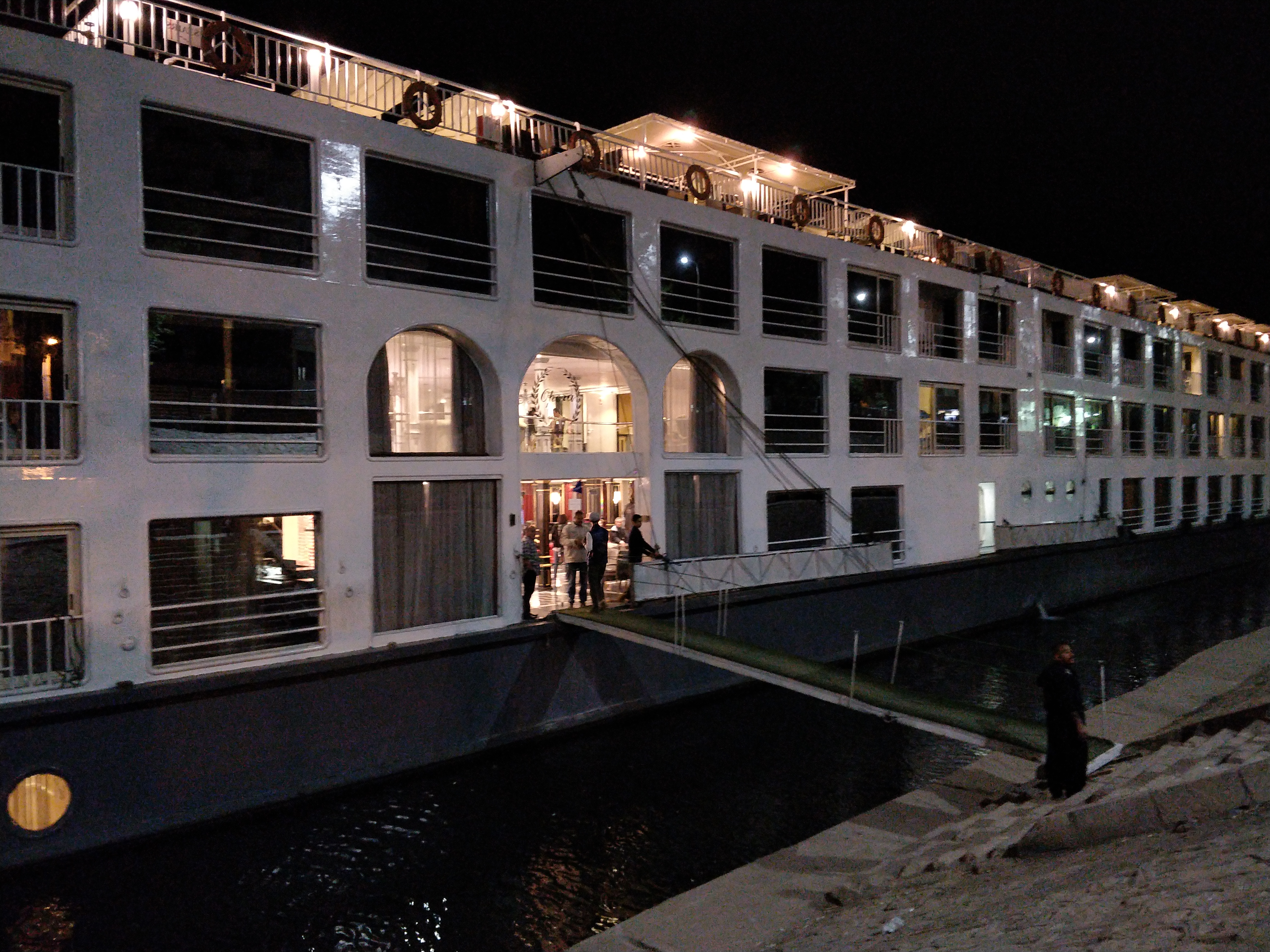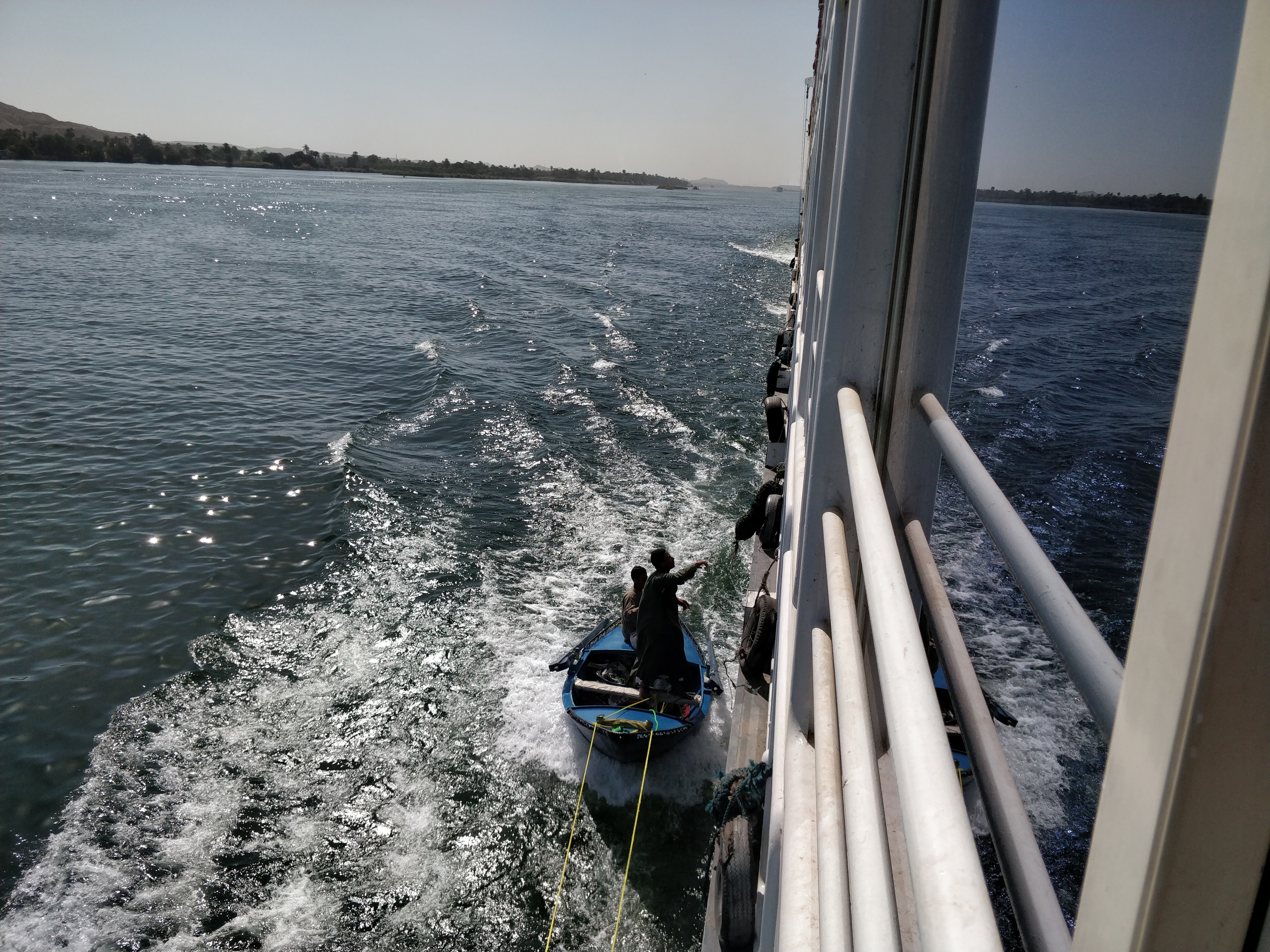 At a place called Esna, we got to see something incredible. There was a wall constructed across the river – only a narrow passage could be seen on one side – presumably for boats to go through. However, the wall was immediately followed by a road bridge with vehicles passing. Ah, so this must be a drawbridge!