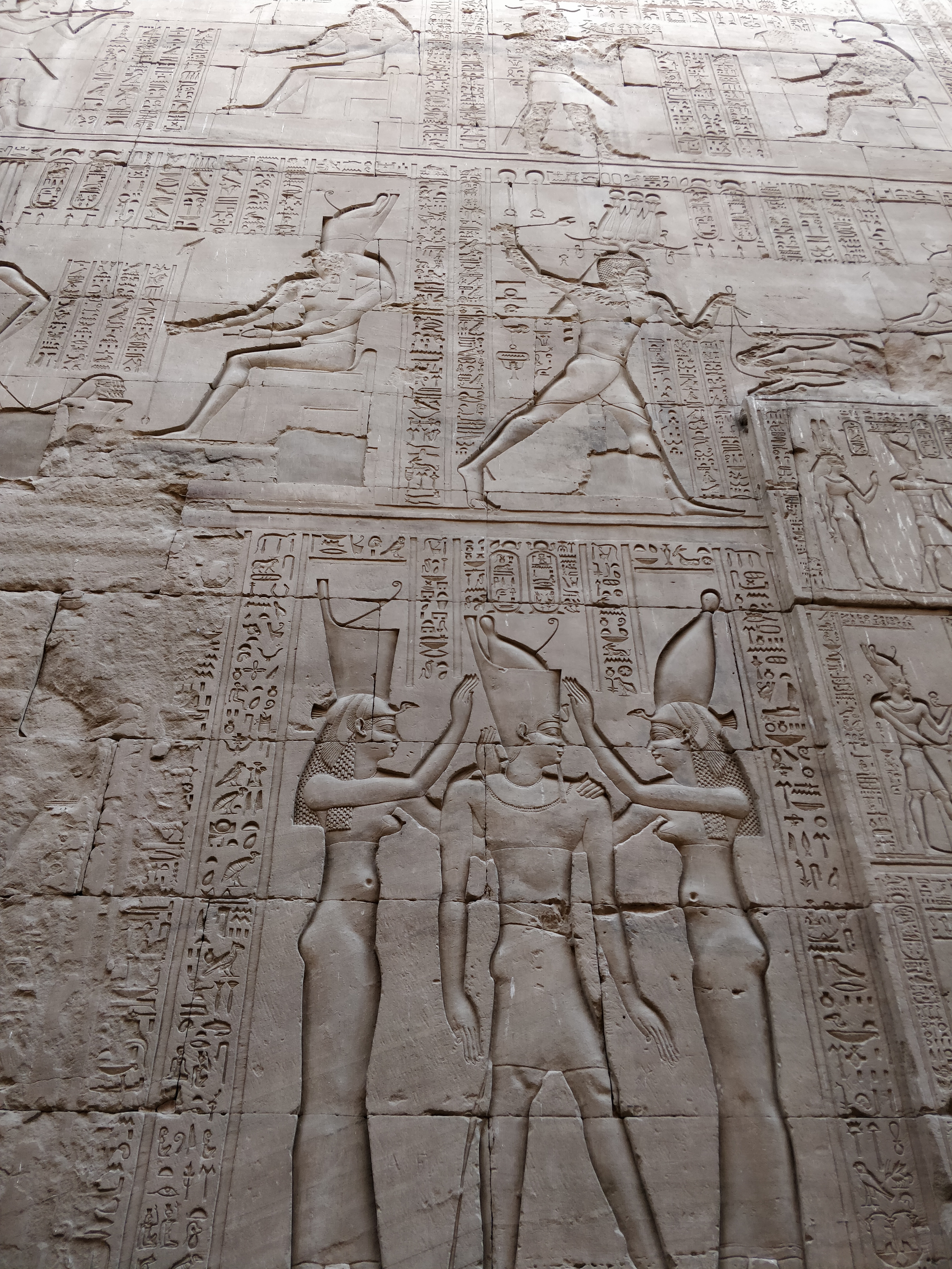 As soon as we got to the temple, Ahmed rushed us to the front to beat the crowd. We walked through some ruins and we could see bits of the pylon. The suspense built up until we could see the entire front facade. Remember the pylon from Philae temple in the previous episode? This one was way bigger than that! The Edfu temple is special – it is one of the best preserved structures from Ancient Egypt – one that didn’t have to be relocated due to the Nile floods. It is the largest temple of its kind which is still intact.