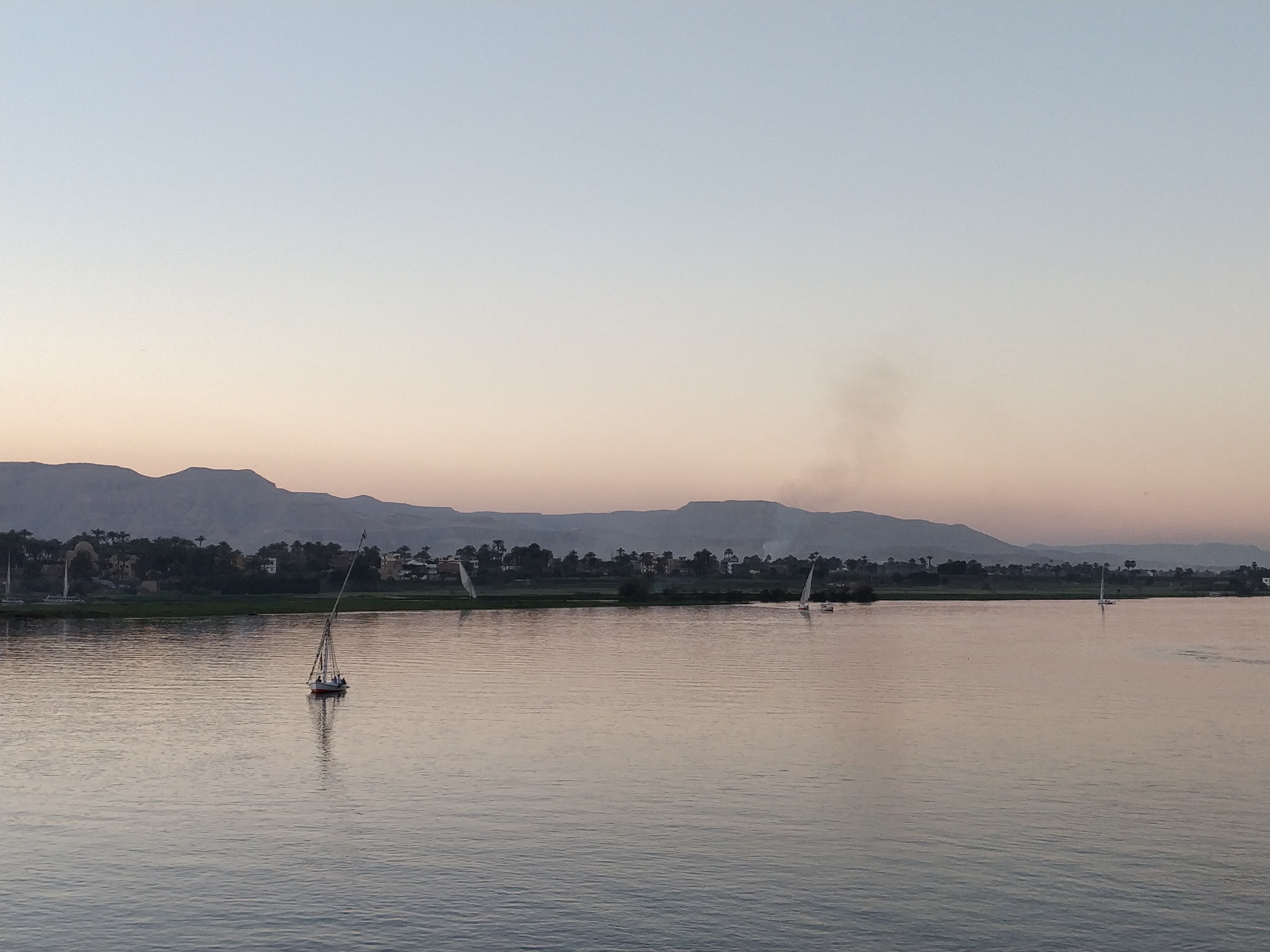 As we neared Luxor, we started seeing mountains – a complete change in scenery! There were sailboats floating around the water. Our Nile river cruise was almost over.