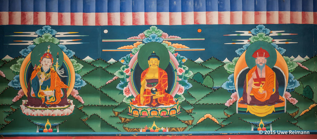 As we visited more places, we could identify some of the deities and stories from here – it was quite an immersive experience. Karma mentioned that everywhere we went in Bhutan, we would see the statues and paintings of the three most significant people – Buddha Shakyamuni, Guru Padmasambhava and Zhabdrung Ngawang Namgyel. While Buddha Shakyamuni is the founder of Buddhism, Guru Padmasambhava (or Rinpoche as he is known) was the one who brought the tantric form of Buddhism to Tibet and Bhutan. You can recognize him by his characteristic moustache. Zhabdrung is known as the founder of Bhutan and the one who originally unified the kingdom.