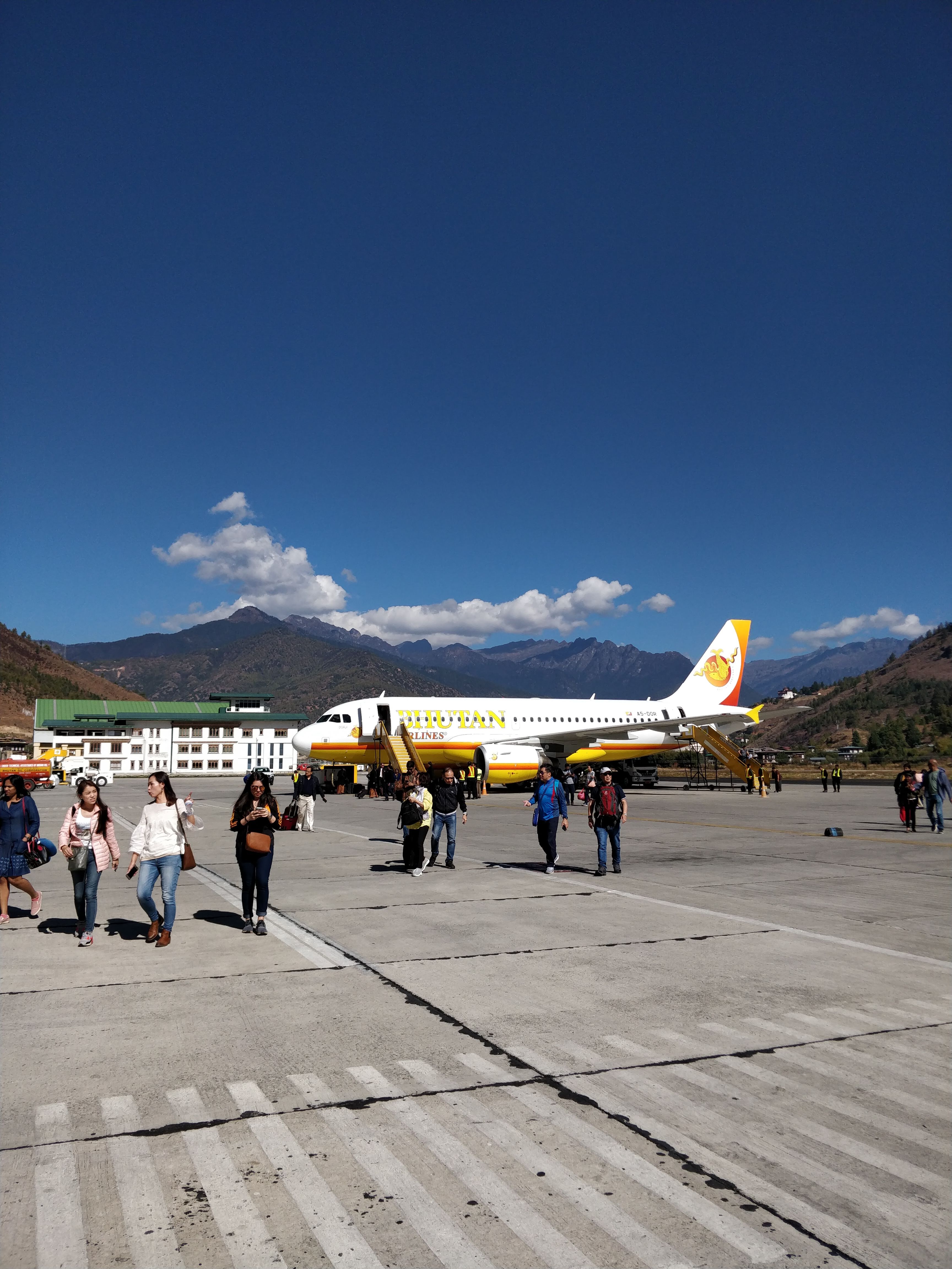 Before we know it, we touch down at the Paro airport. After we got down the plane, we could see tall mountains on both sides of the runway – no wonder it was considered to be one of the most dangerous airports in the world. In fact, only a handful of pilots in the world are certified to fly to this airport! Truly an adrenaline pumping start to the trip.
