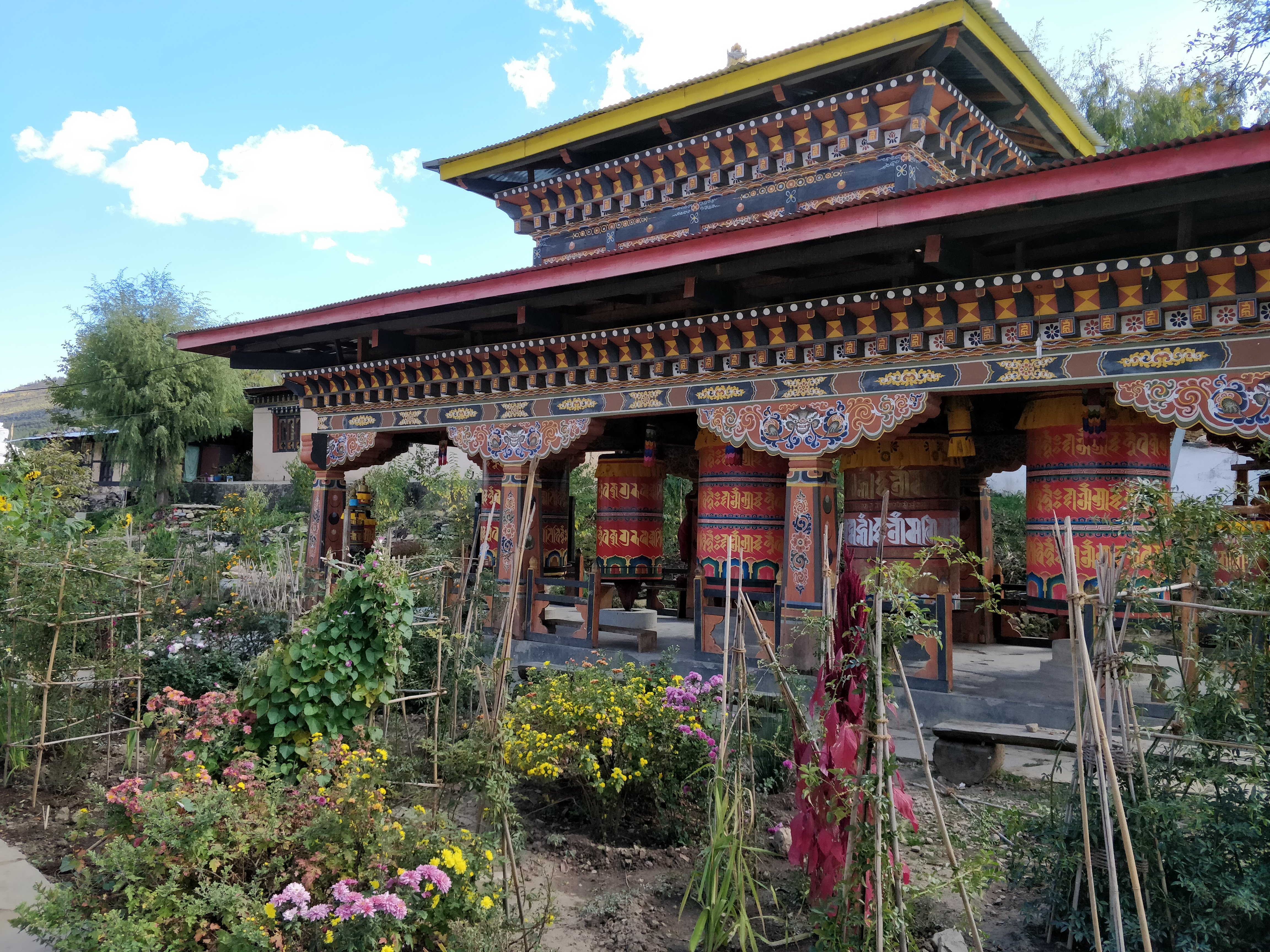 Our first stop was the oldest temple in Bhutan – Kyichu Lhakhang. The temple was built in the 7th century by the Tibetan king of the time, Songtsen Gampo. A beautiful structure surrounded by giant prayer wheels and ancient trees, it was a good place to start the trip.