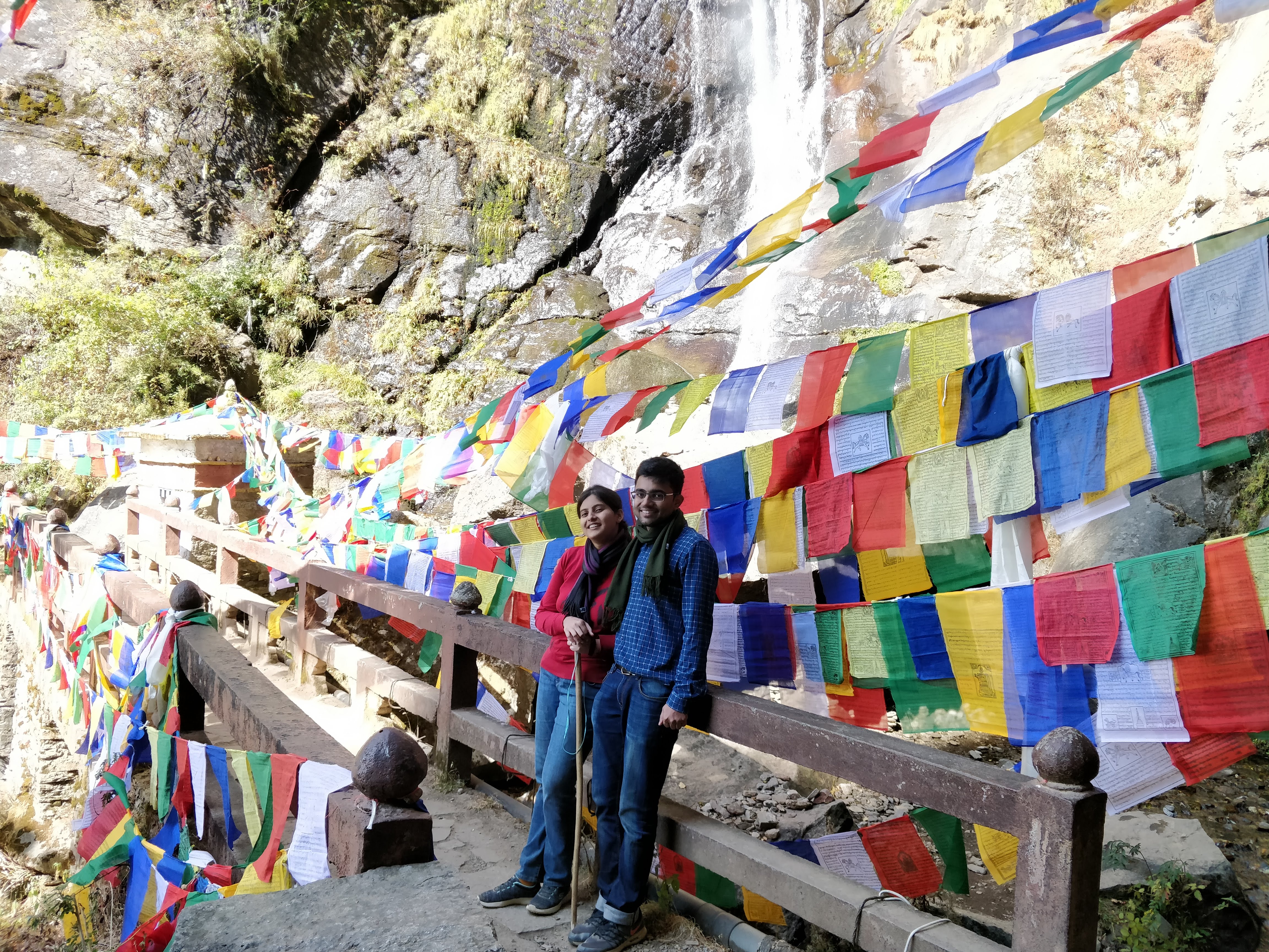 At the bottom of the stairs was a waterfall and a bridge covered in prayer flags. The ambience here literally injects energy into you – this is exactly what we needed to make our way up the final set of steps. It took about another hour and 10 mins from the cafeteria to get here.