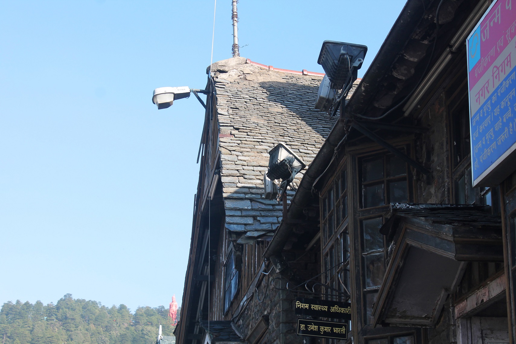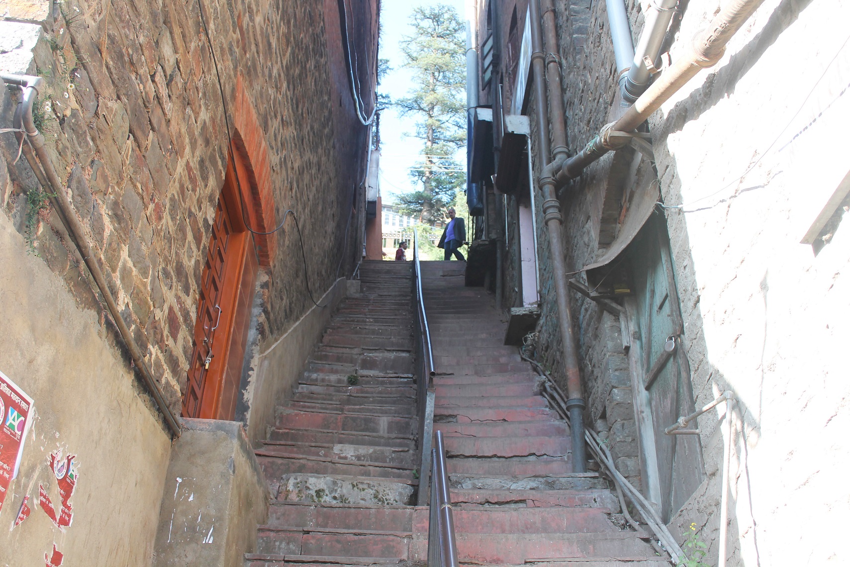 We walk down from the Ridge along the corporation building. This building has a sloping roof made of stones and looks like a typical heritage site. There is a statue of Lala Lajpat Rai where this path joins the Middle Bazaar.