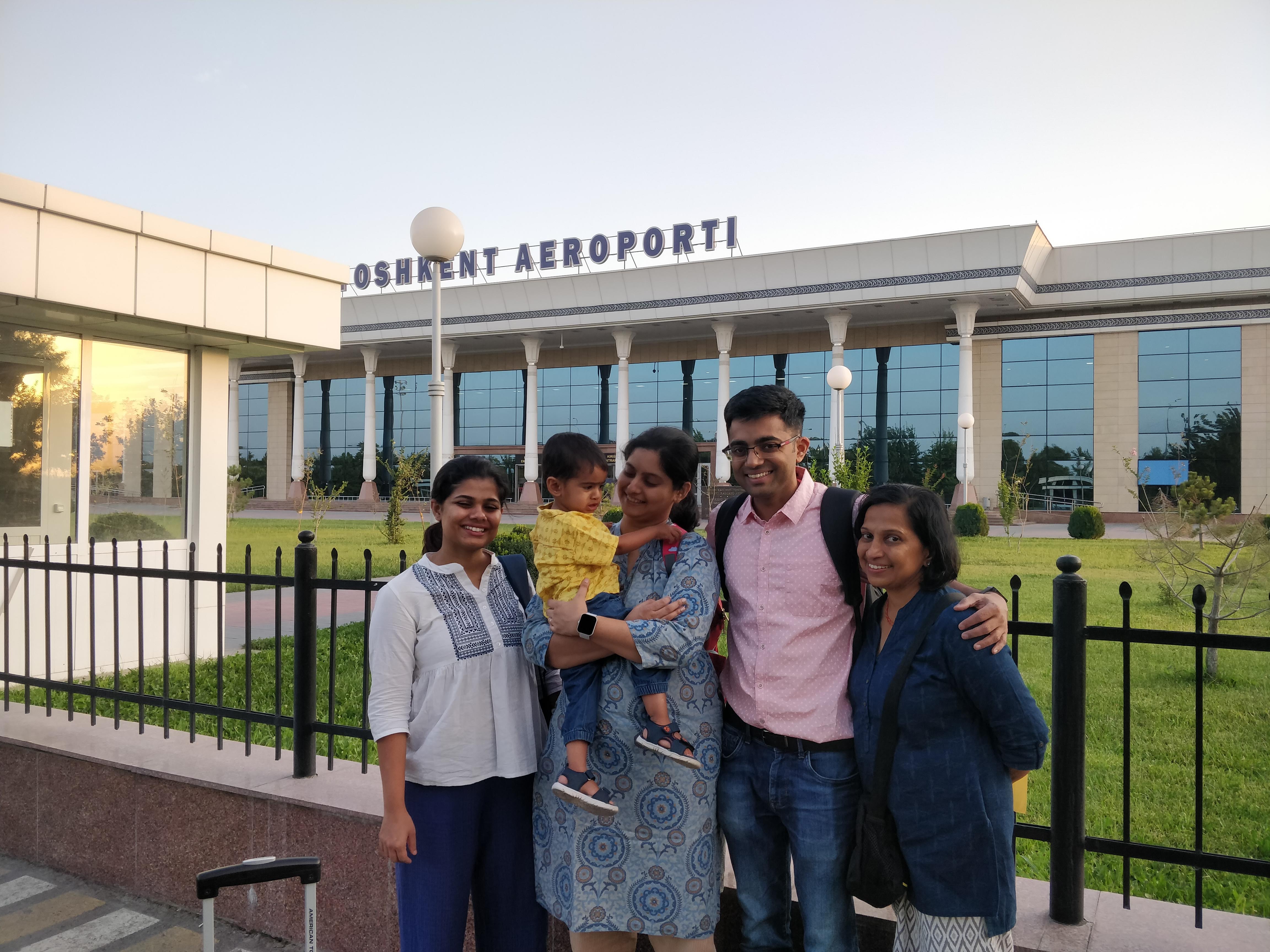 On this trip, we were joined by my parents and sister. My parents were on their way from Kochi to Delhi and sister from Mumbai to Delhi. The plan was to meet at the Delhi airport and travel together from there. It seemed unlikely that we would reach Delhi on time for our connecting flight. So, I dropped a quick note to them that they should continue their flight to Tashkent and we would figure out a way to get there. Worst case scenario, they would have to do the trip without us.