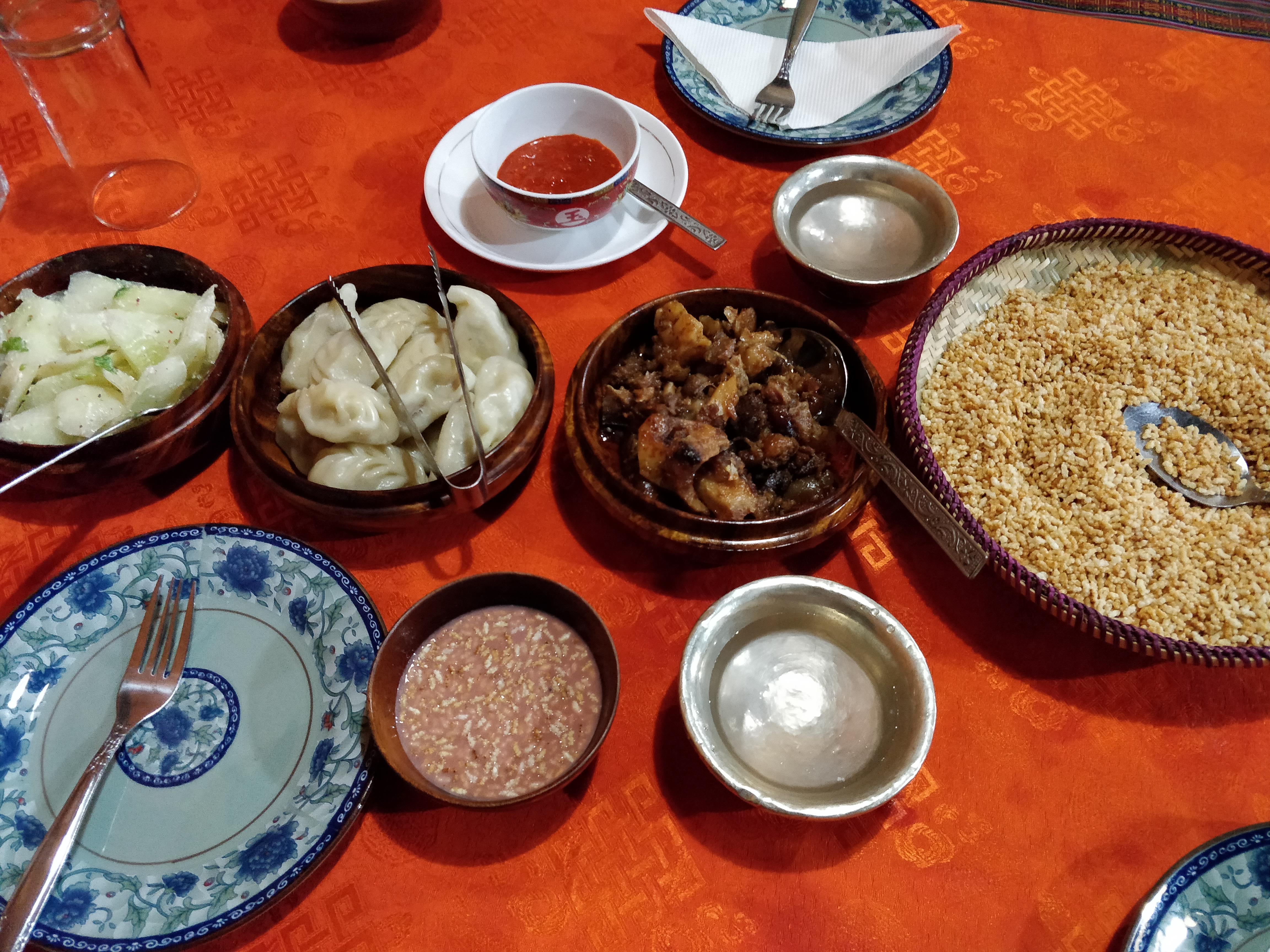 Wow, where do I begin? Let’s start with the butter tea. As the night gets colder, this warm cup of happiness comes to your rescue. Enjoyed with crunchy rice either as a topping or a side, it is the perfect way to start. We also had some dumplings, pork and ara (locally brewed rice wine) as starters.