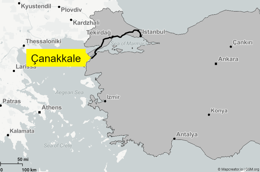 Our first stop in the trip was the western city of Çanakkale. It was a long drive – took almost 4 hours and Parth slept throughout the drive on Appuppa’s lap. On the way, we saw the Marmara sea, a sea contained entirely within Turkey and the one which connects the Aegean Sea to the Black Sea. On the Aegean end of the Marmara is the Dardenelles strait (Çanakkale is at the narrowest part of this) and on the Black Sea end is the Bosphorus strait which we had crossed in Istanbul. The Marmara Sea and the straits split Turkey into its Asian and European sides. The Marmara is named so because of the marble islands in it (the origin of the hindi word “sangmarmar”).