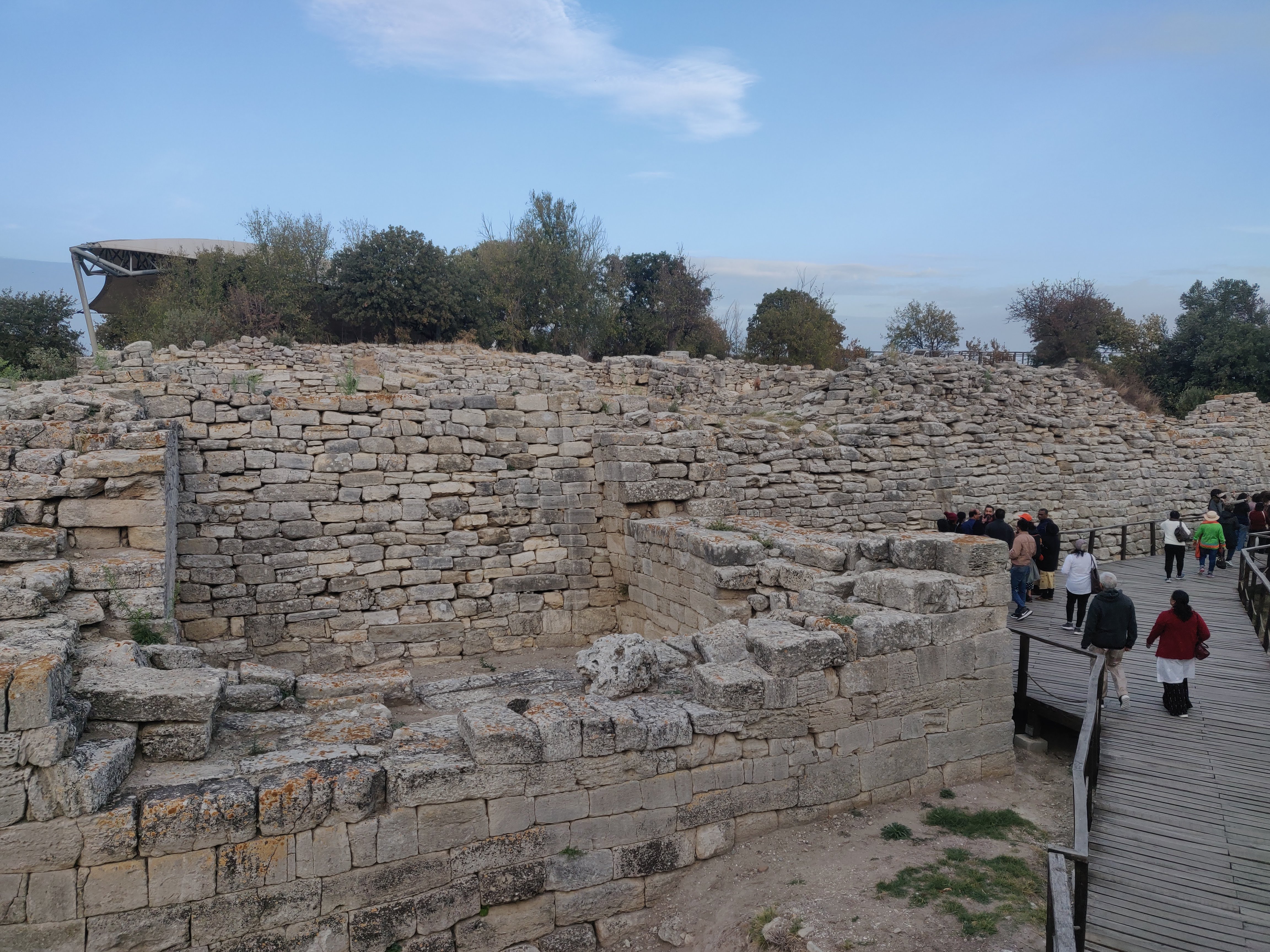 We walked around the Troy city ruins. Each wall of the 9 versions of the city was visible in the first section. The walls got narrower near the entrance. We then got to a viewpoint – the city was on a cliff. And contrary to what was mentioned in the book, there was no sea for a long way. In fact, a few thousand years ago, the sea used to be till Troy and gradually receded over the years – now there is a huge flat field there.